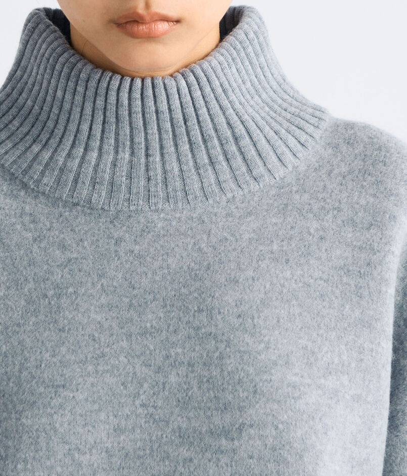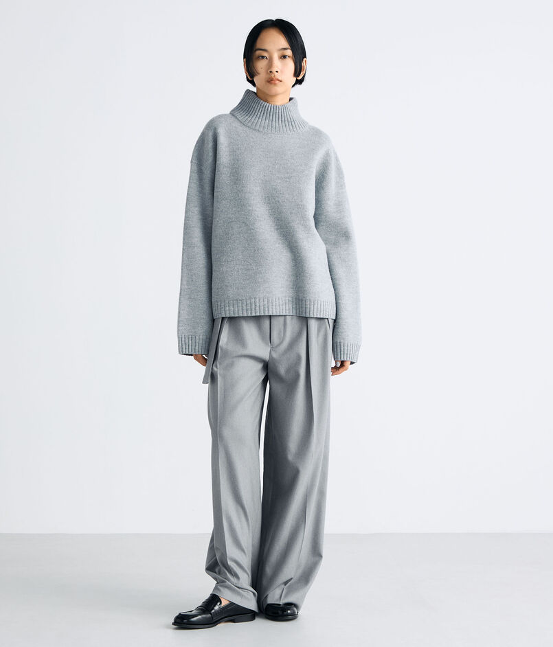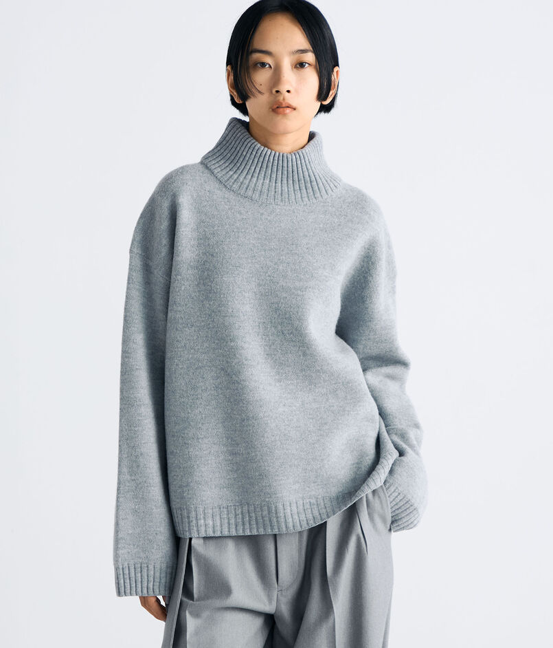 リラックスシルエットでどんなボトムにも合わせやすく、軽やかで暖かなタートルネックニット。
