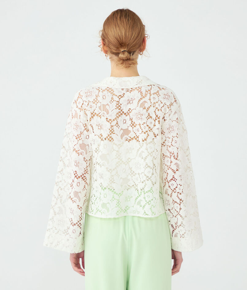 太めのコード糸を使用したコットンベースの質感と、クセのない大胆な花柄の組み合わせが魅力的なレース素材のブラウス。