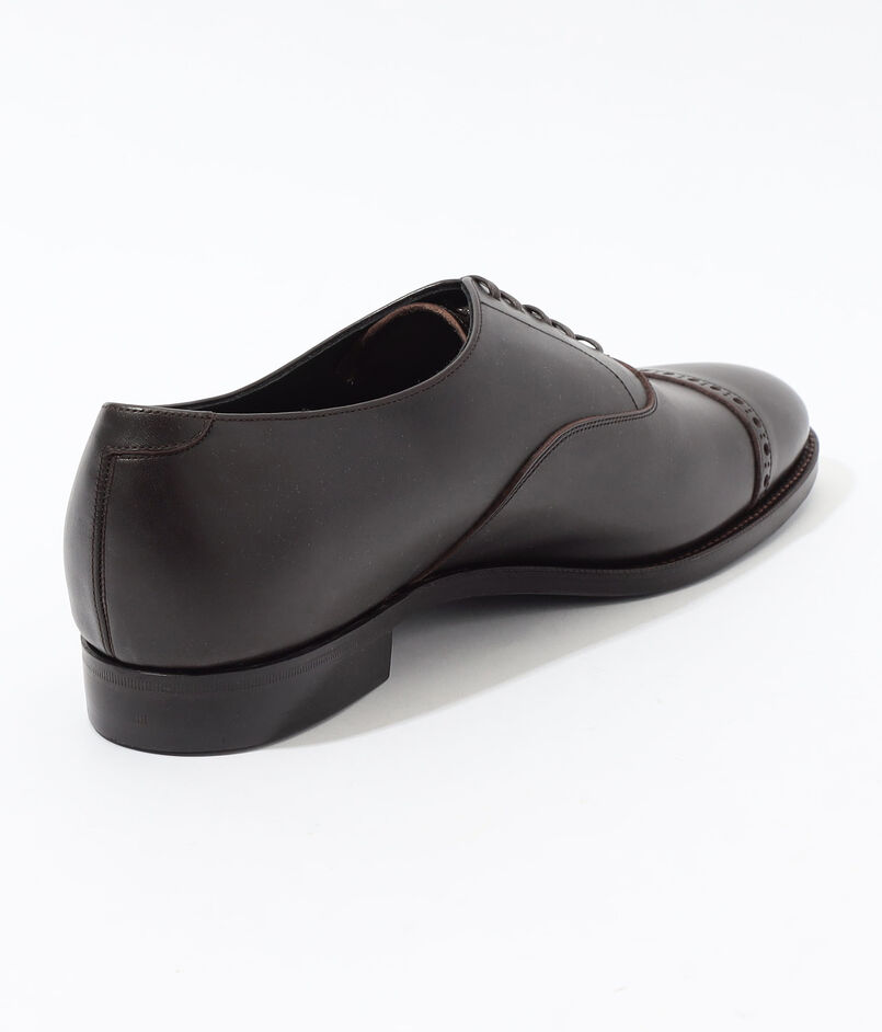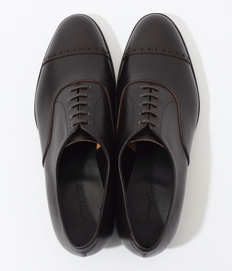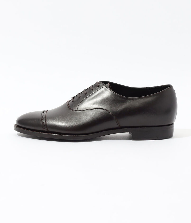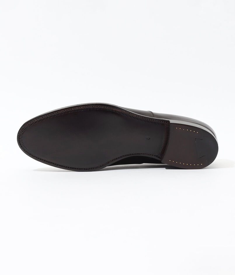 また、現在の量産品の靴型ではあまり見られる事のなくなった、クラシックなイギリス靴らしい適度なねじれを再現しています。このねじれの形状が歩行を助けるとともに特徴的なシルエットを生み出しています。デザインは内羽根を採用し特徴を最大限に引き出しています。