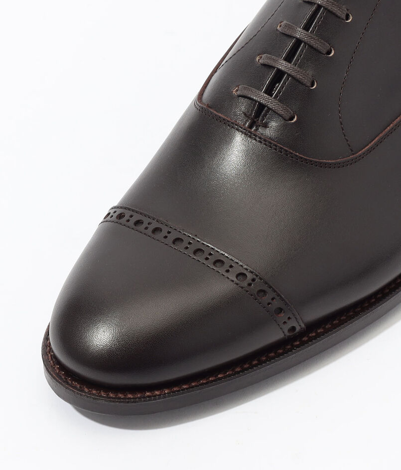 靴全体のイメージを決める靴のトゥ部分はやや長めにとり、クラッシクな良さは残しつつ現代のスーツスタイルに合うようアップデートしています。