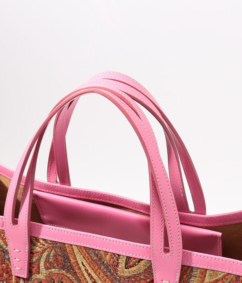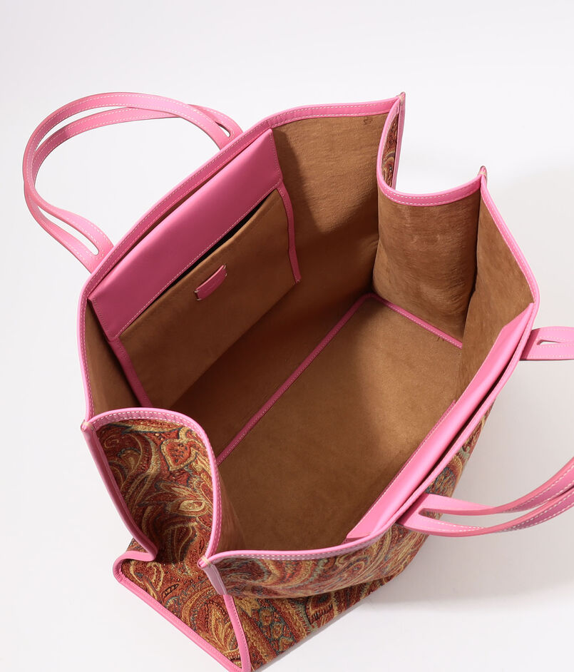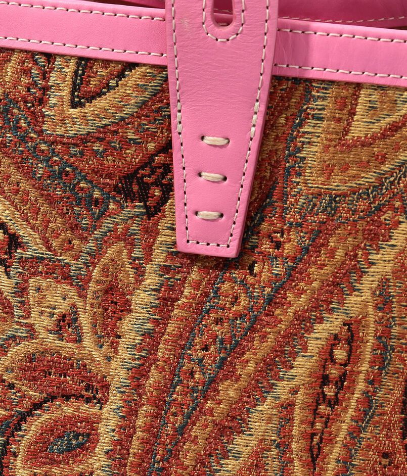 ブランド不変の人気を誇るオレンジペイズリーに、ピンクレザーのアクセントで小粋な遊び心を宿した一点。
