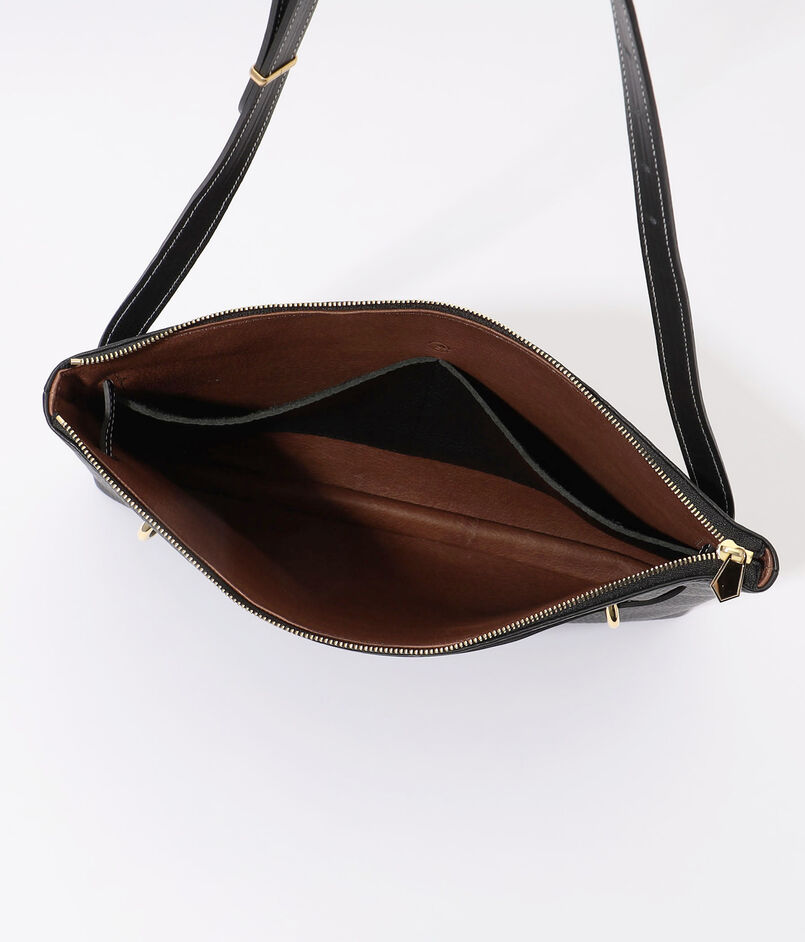 ヨーロッパでは幼少期から革に触れ合う文化があり、子供が学校用として初めて持つようなレザーバッグから着想を得たショルダーバッグ。