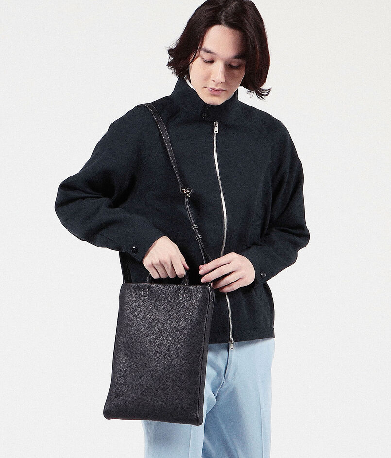 最小限の荷物を入れることを想定した設計により、軽く仕上げ、様々なシーンでの使用はトート&ショルダーの2WAY仕様により実現。スタイリングに溶け込むという点では、マチを極限まで薄くすることで、「持っている感」を削ぎ落としたことで実現。