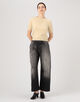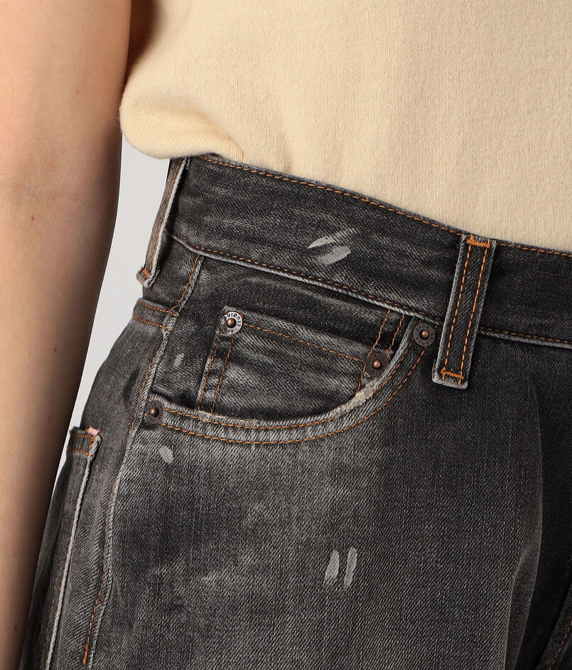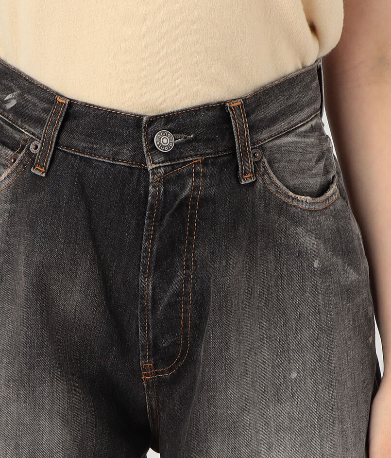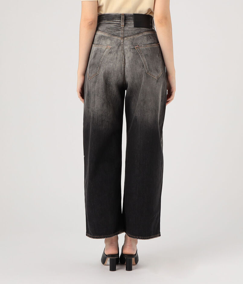 コントラストの効いたウォッシュを施した、ブラックデニムパンツ。