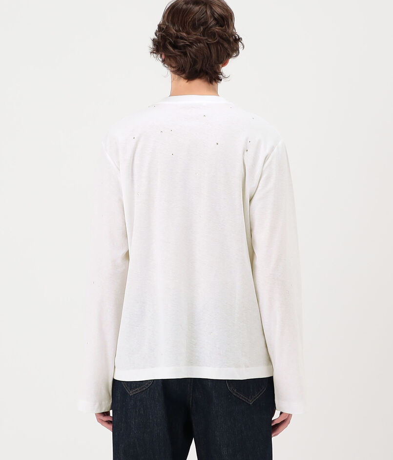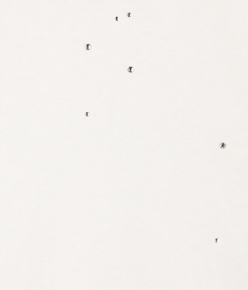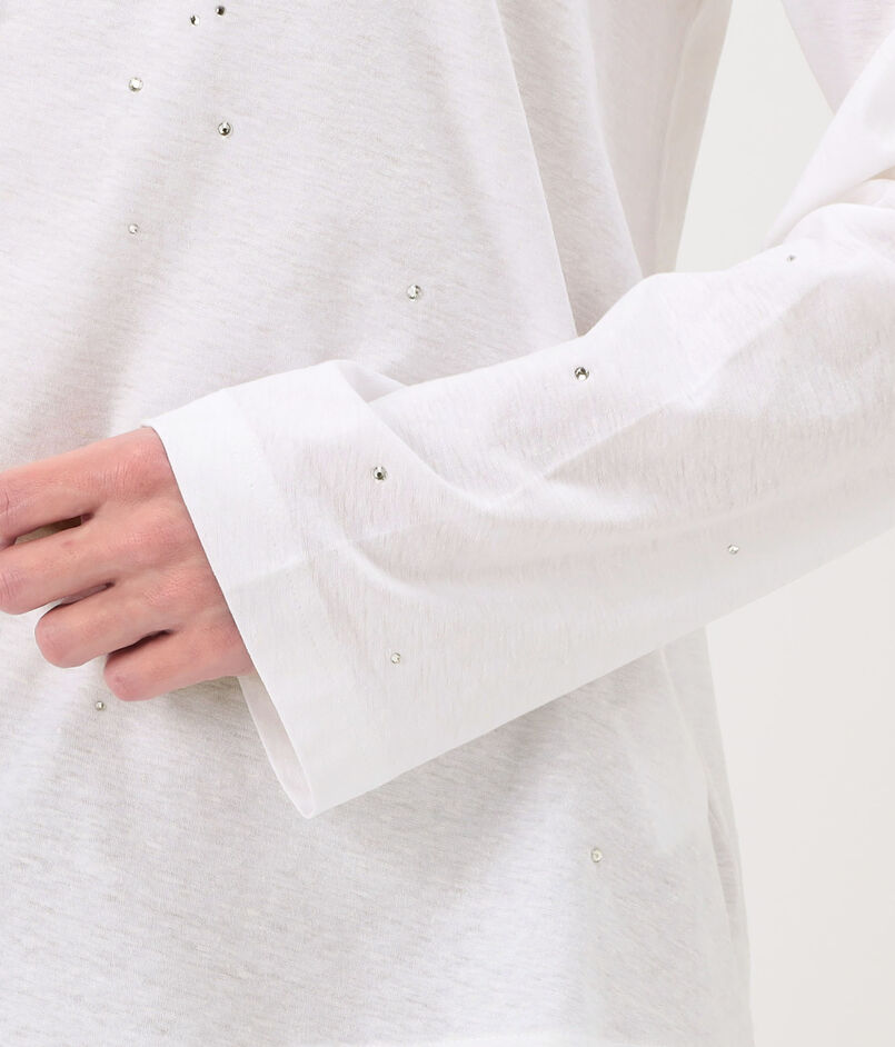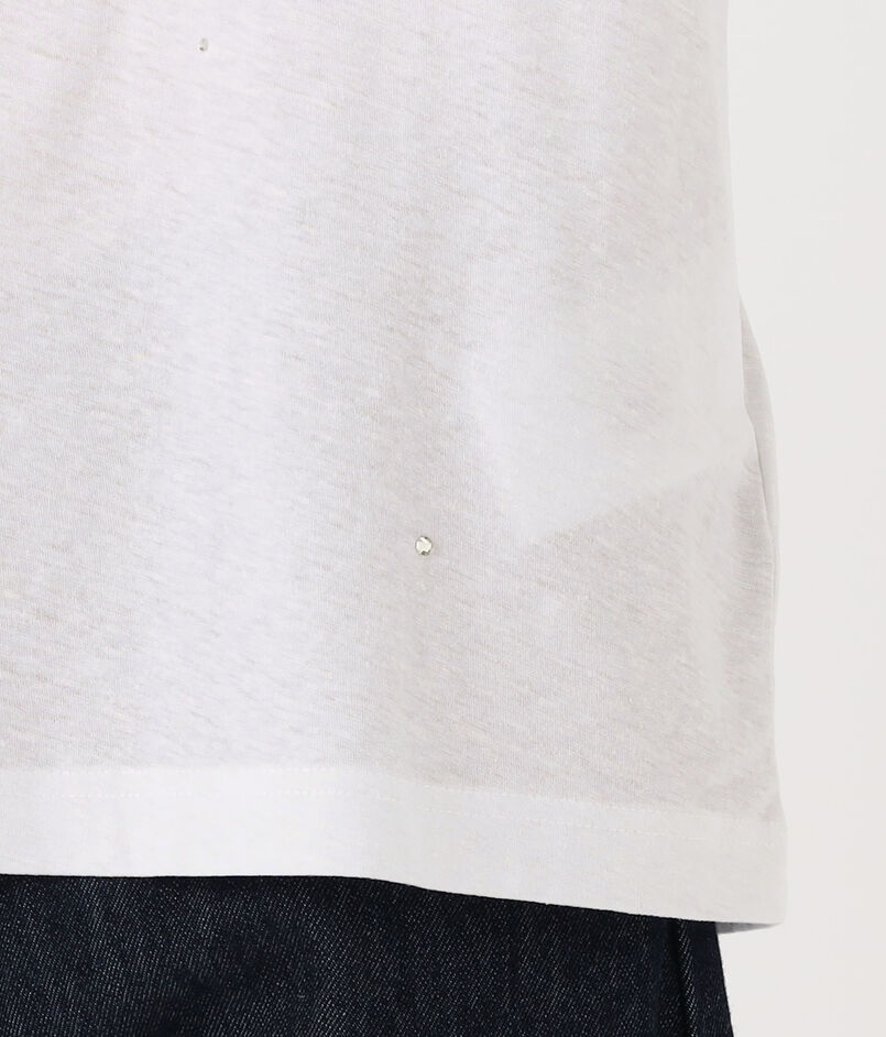 ヴィンテージタッチの薄手のコットンヘンプジャージー素材に、ランダムに散りばめられたラインストーンが華やかなムードを添えます。