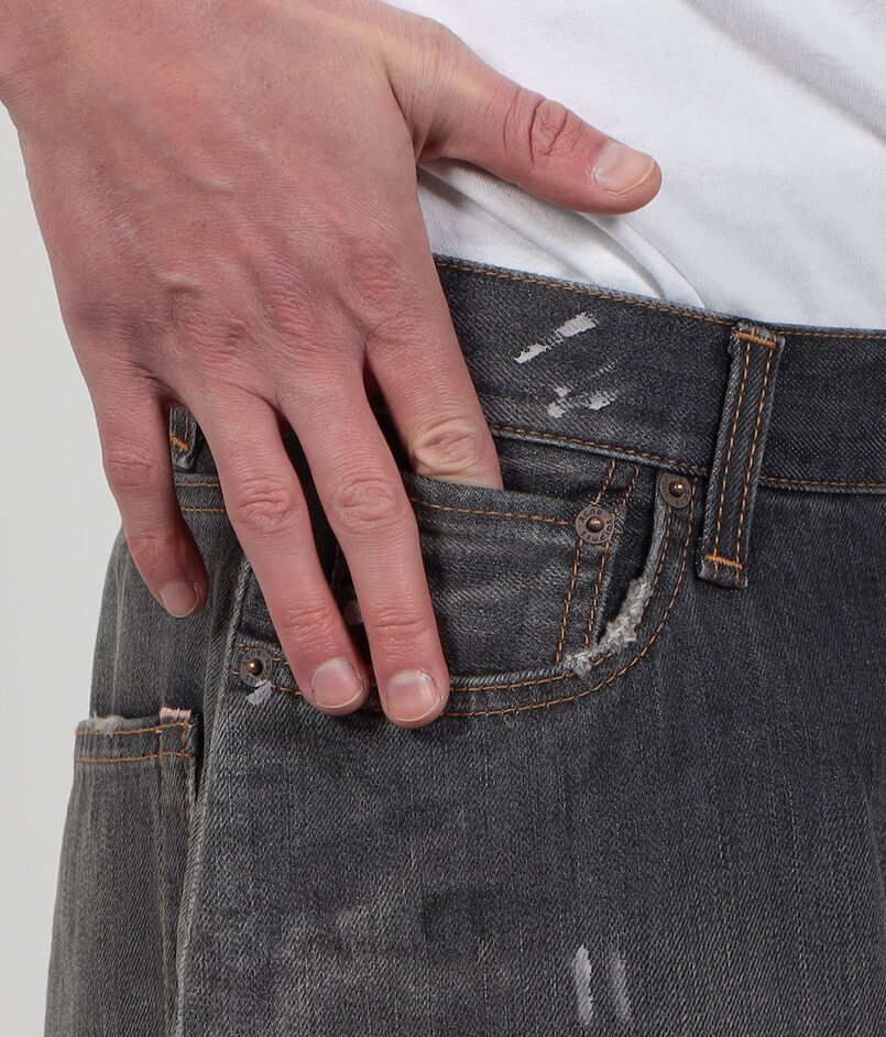 コントラストの効いたウォッシュを施した、ブラックデニム。