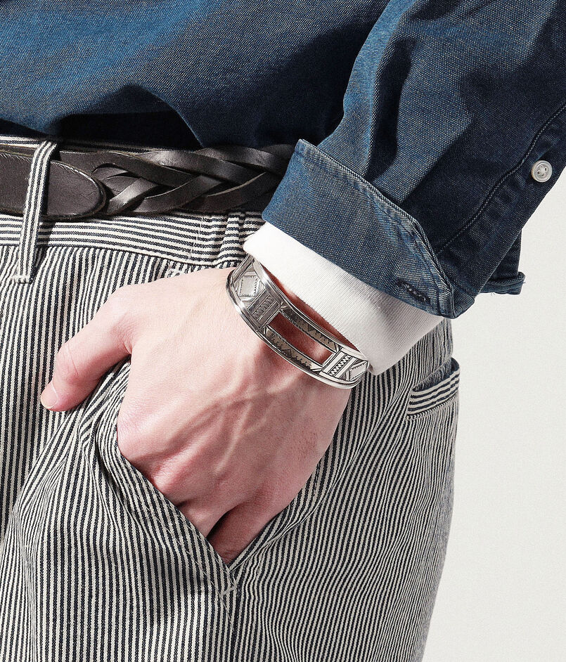 一刀一刀手彫りで丁寧に彫られる模様は、〈HERMES(エルメス)〉のシルバージュエリーにも採用されています。