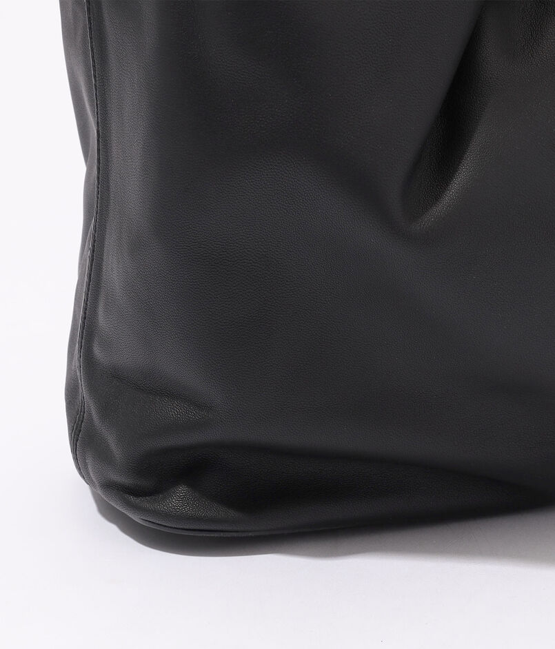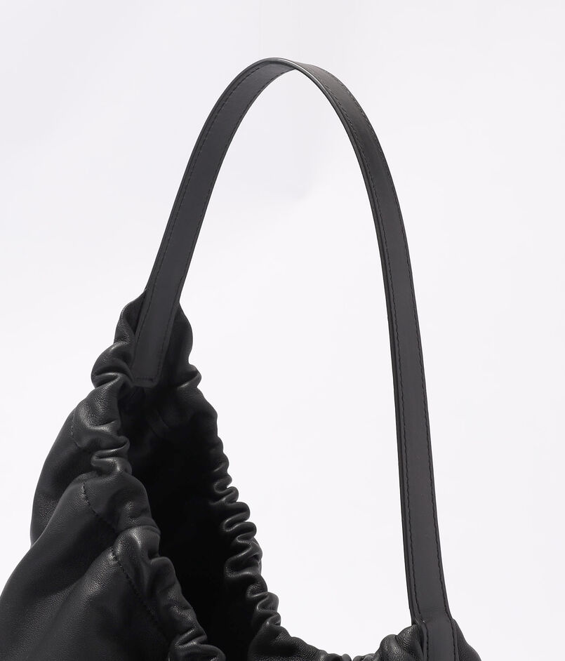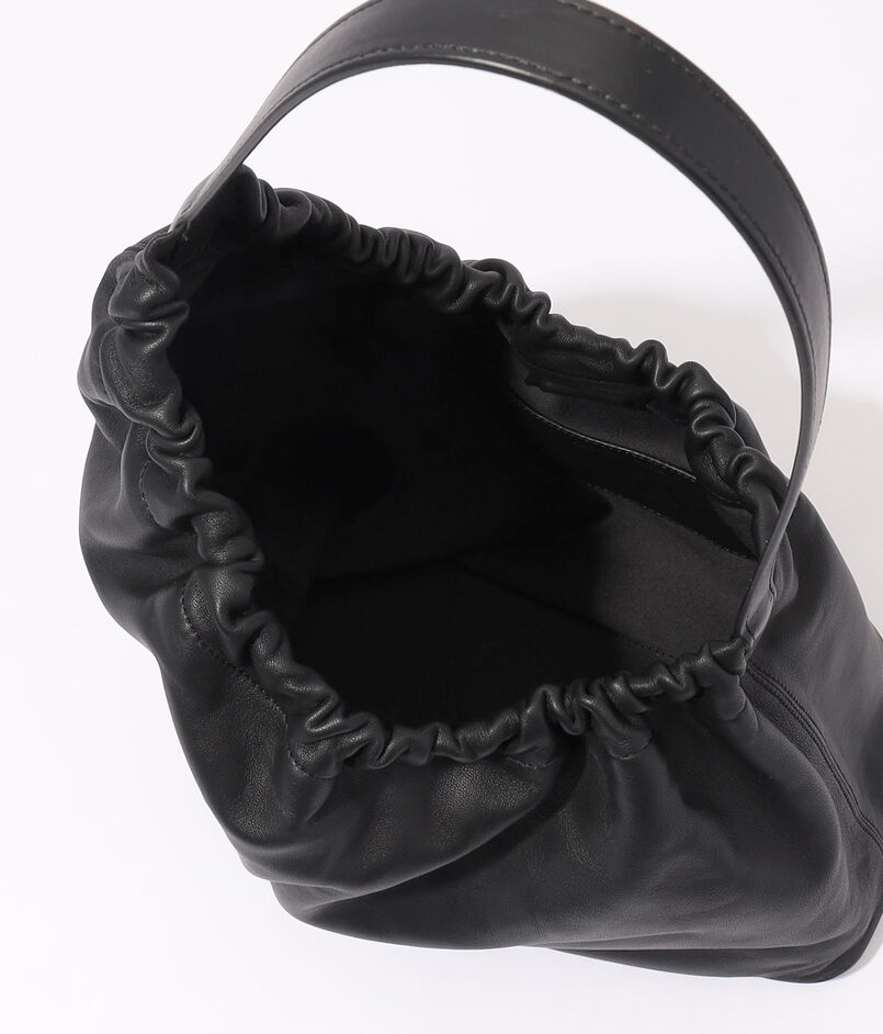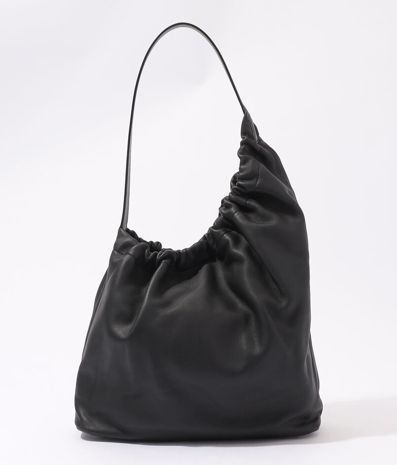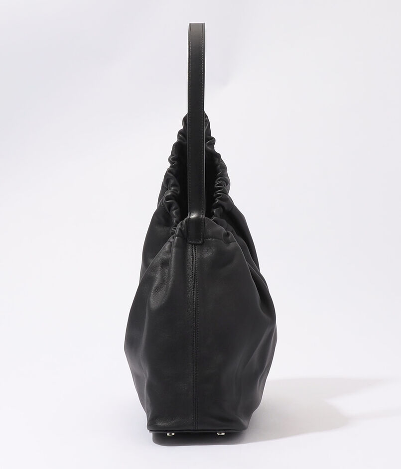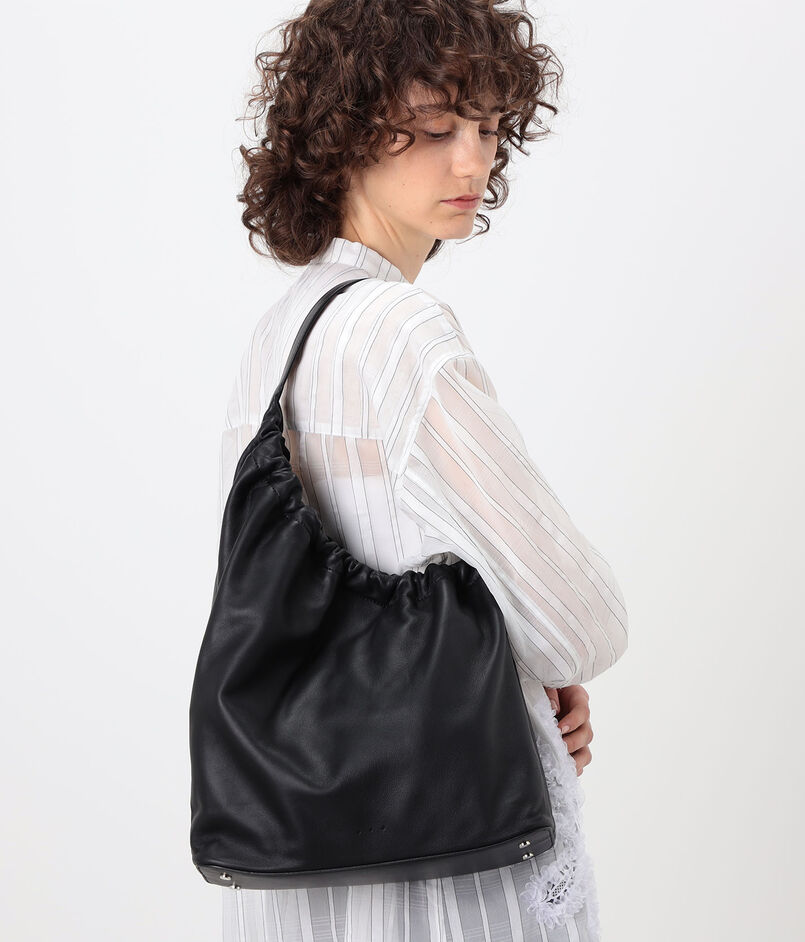 アシンメトリーなシルエットに、ドローストリングを思わせるギャザー開口が組み合わされ、立体感と動きのある表情が魅力です。