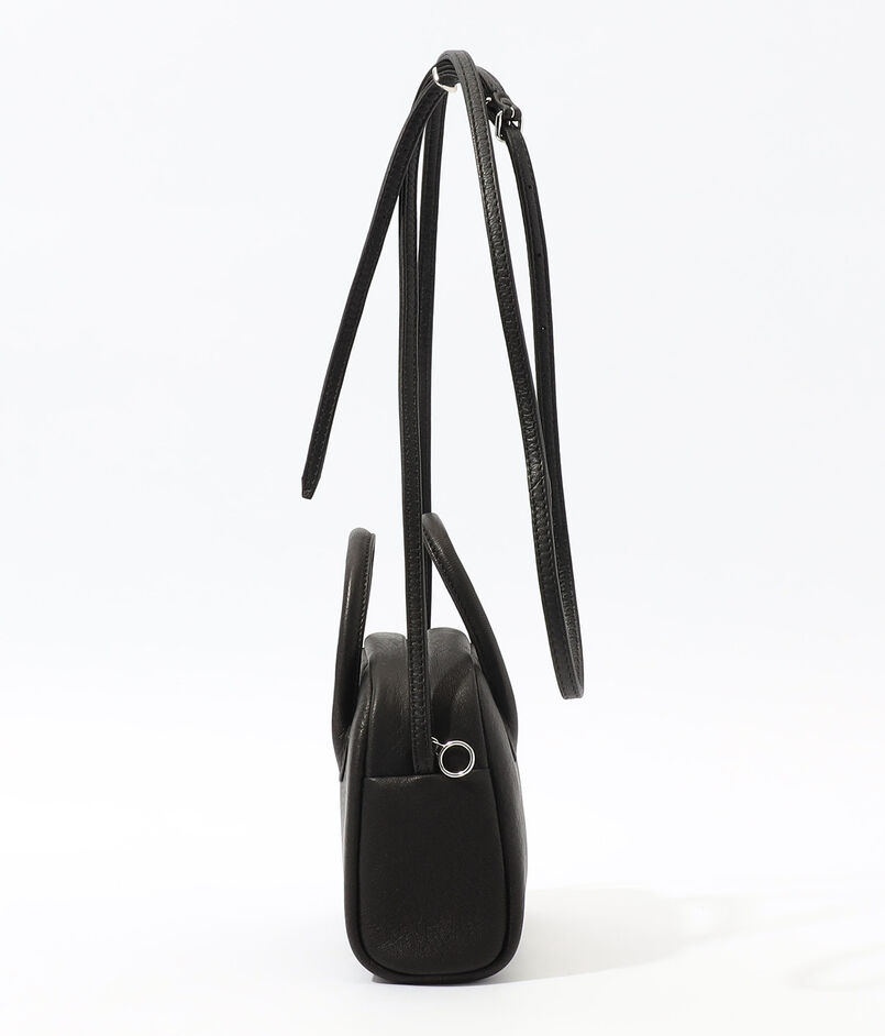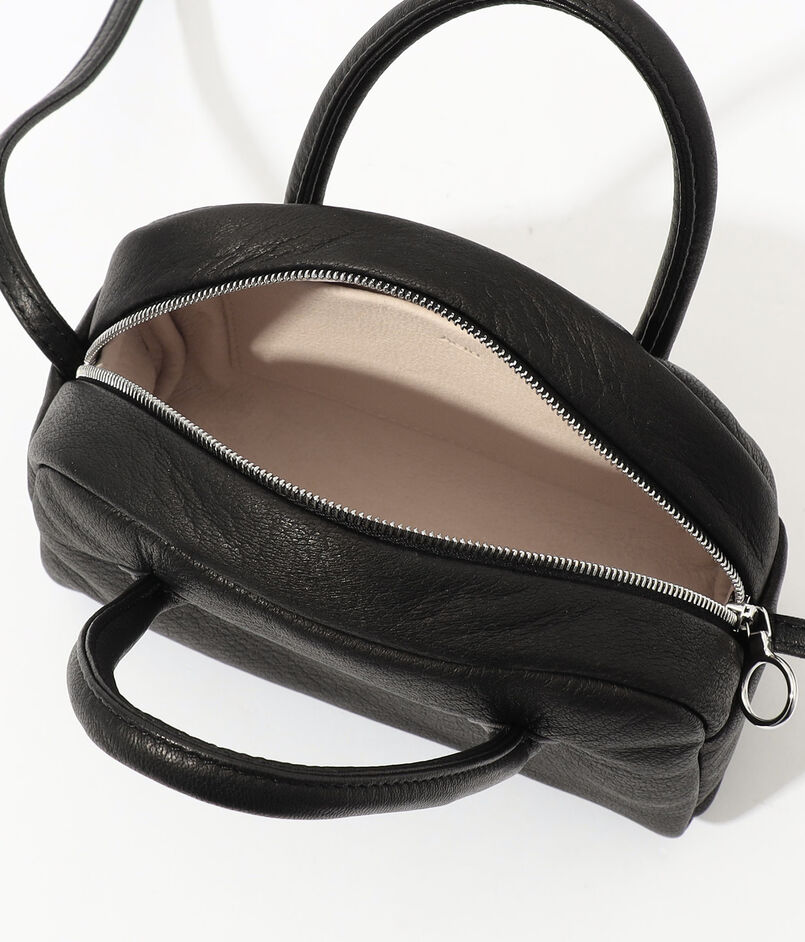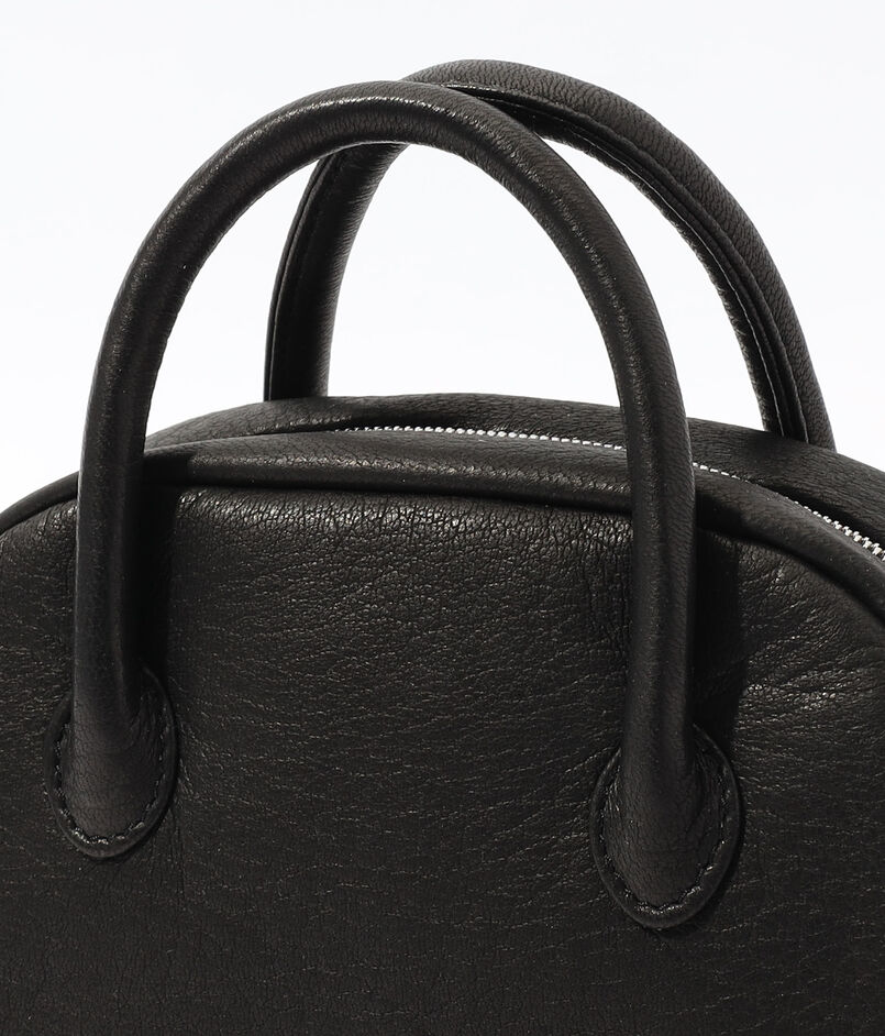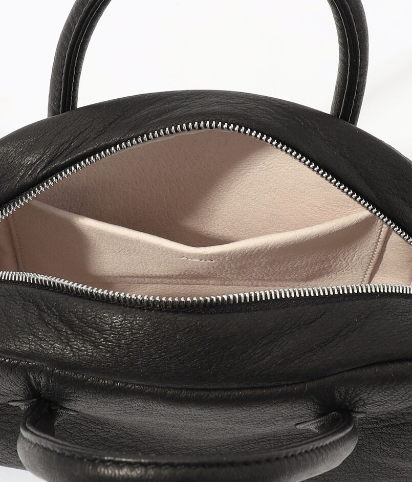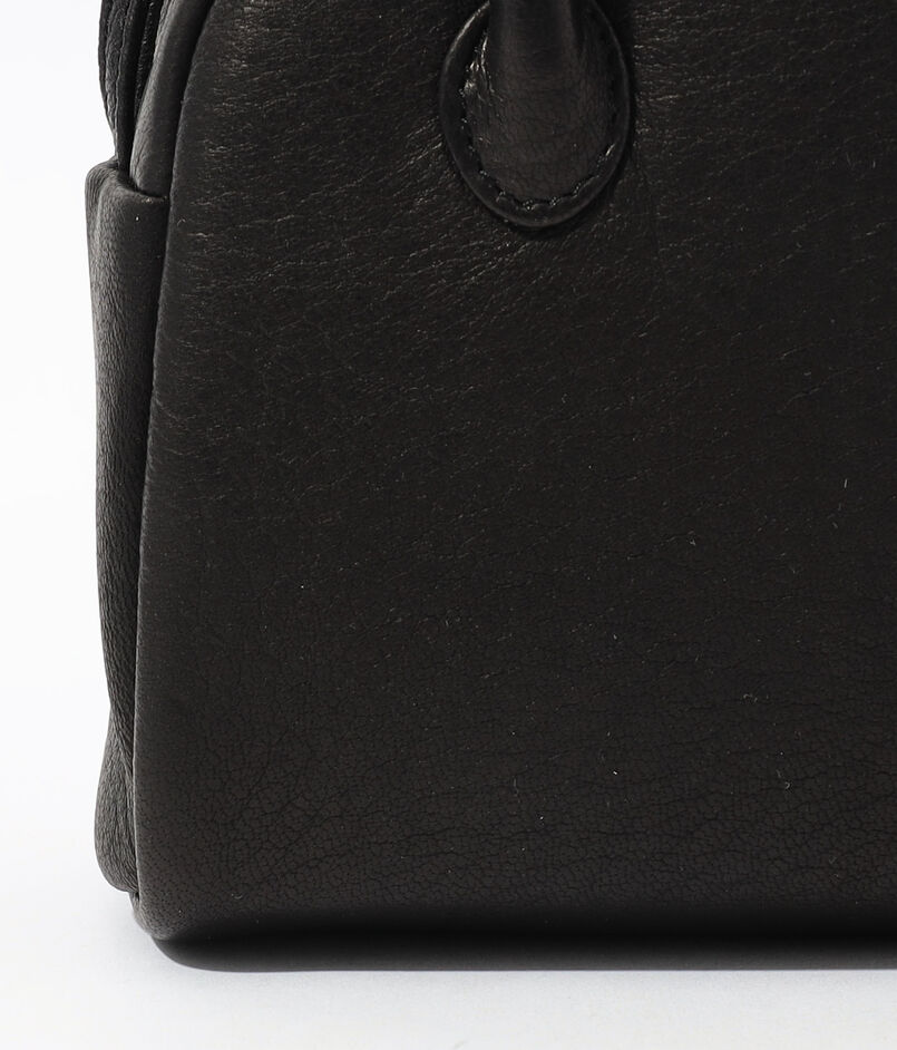 無駄な装飾を省いたシンプルなデザインで、ファスナー仕様の開口部はシルバーカラーの丸い引き手がアクセントに。