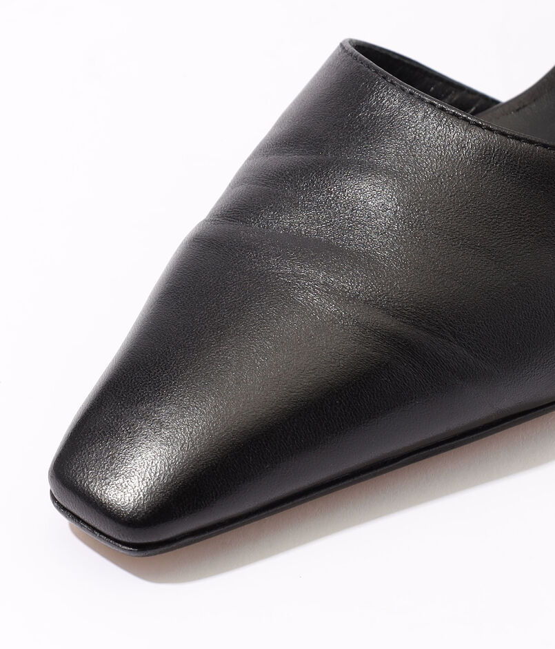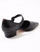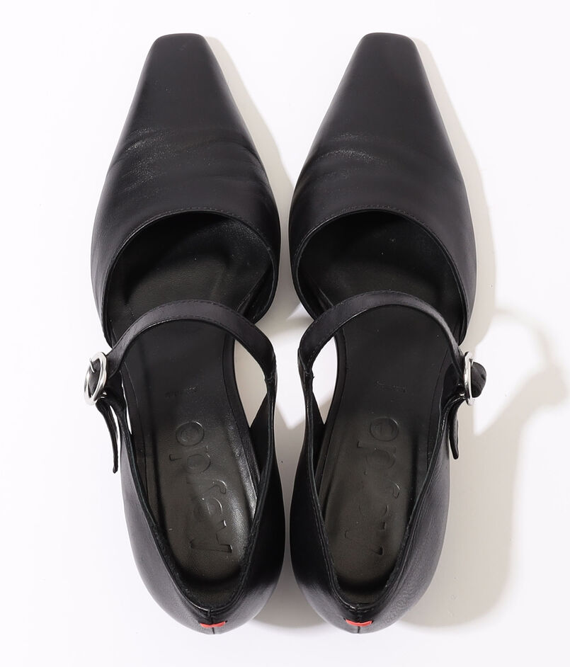 ポインテッドトゥとバックル留めがモードな雰囲気の中にもエレガントさを演出。