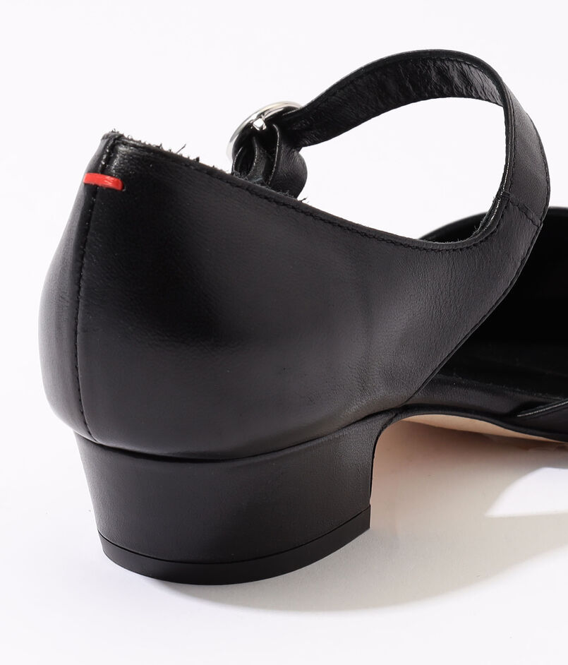 安定感のあるチャンキーな角度付きヒールが特徴です。