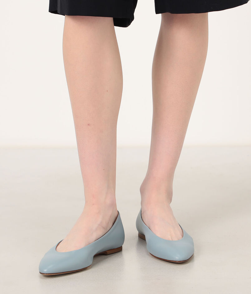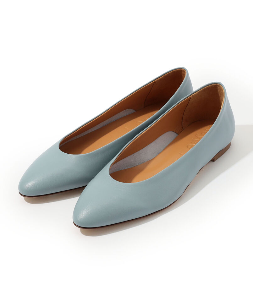 心地よいフラットソールと、足元を美しく見せる浅めのカッティングが特徴です。