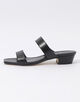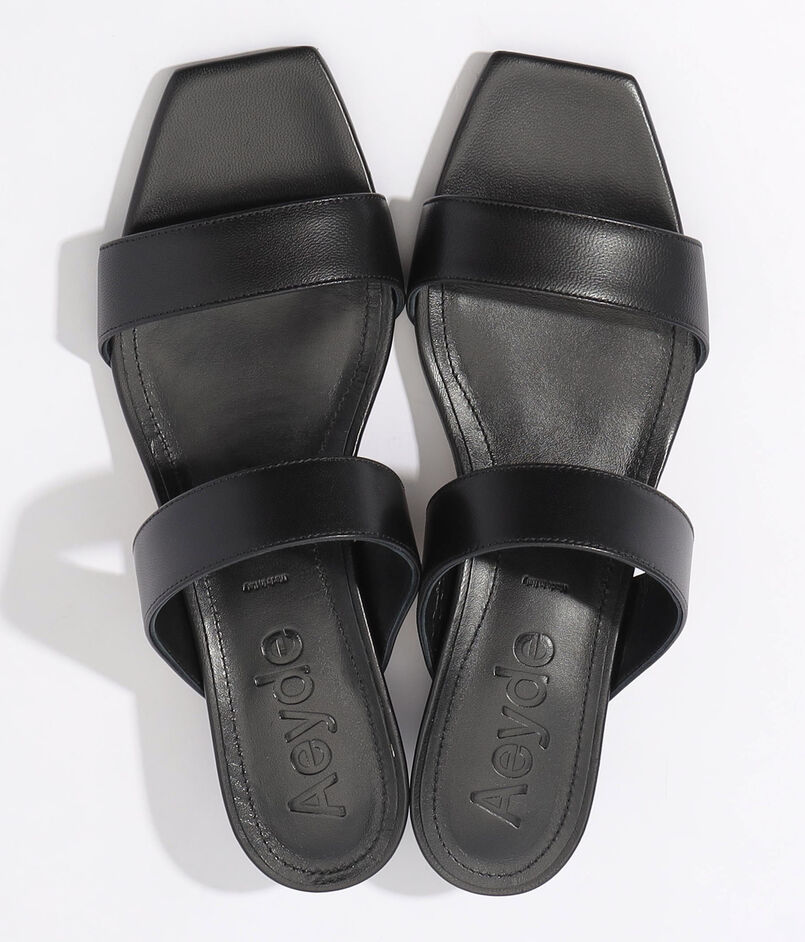 ブランドを象徴するスクエアトゥに、安定感のあるローヒールを組み合わせたデザインです。