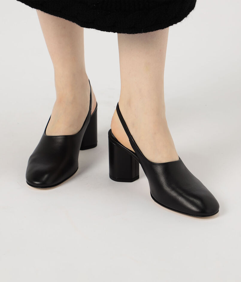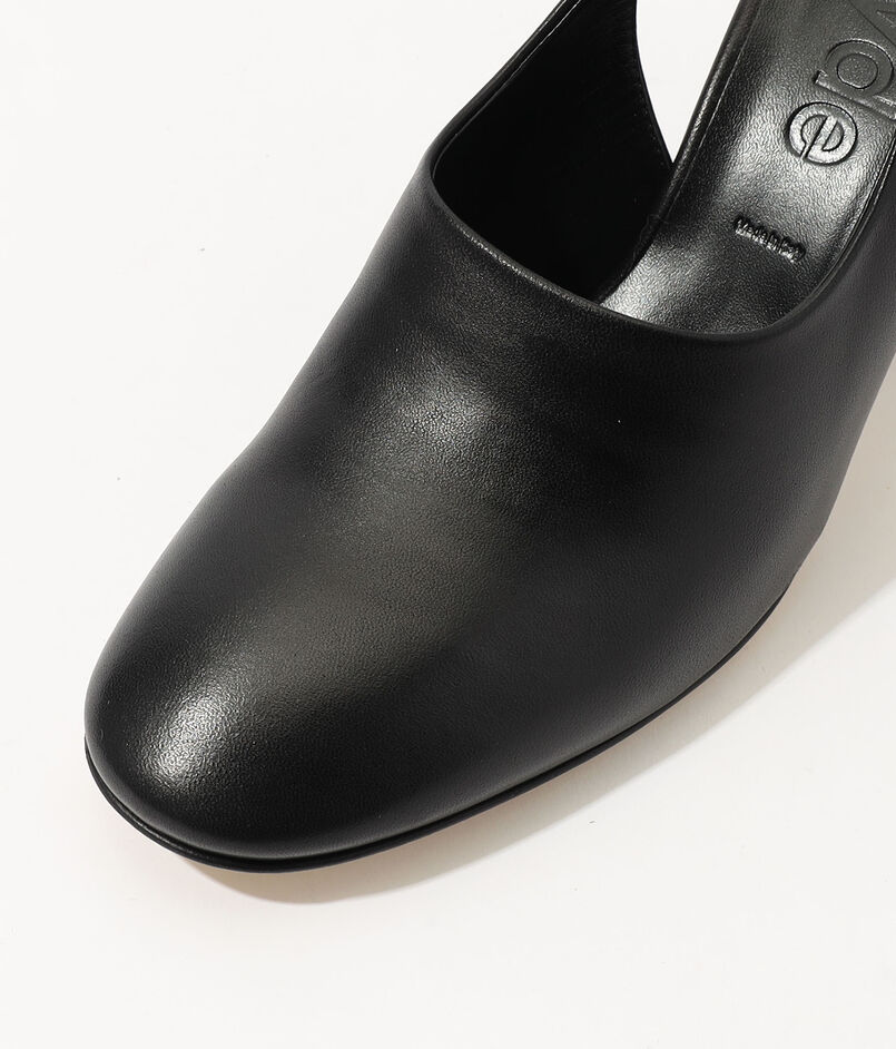 しなやかなナッパレザーを使用し、品のある光沢がポイントのミュールパンプス。