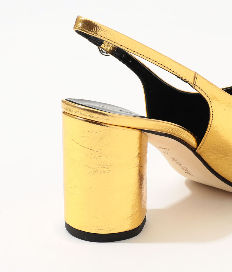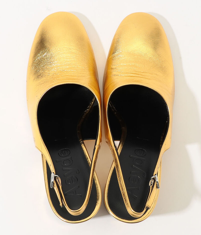 ゴールドの華やかなカラーが、足元にアクセントを加えてくれるアイテム。