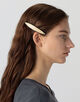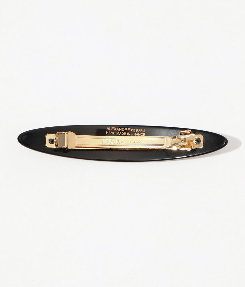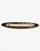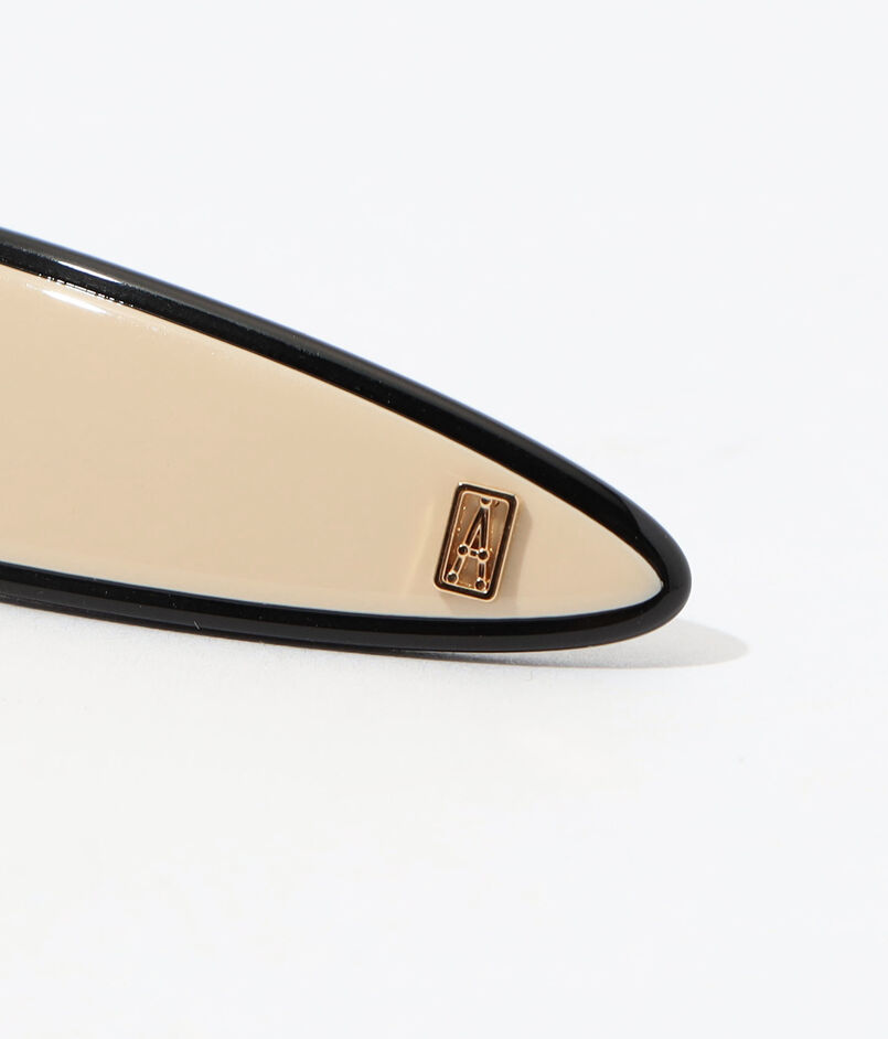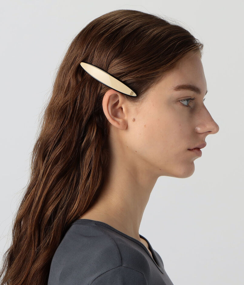ベージュにブラックのパイピングを施した、オーバルシェイプのバレッタ。