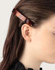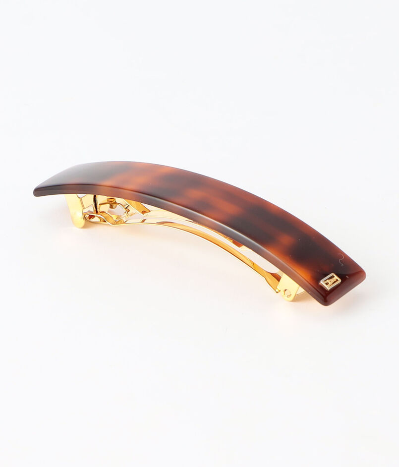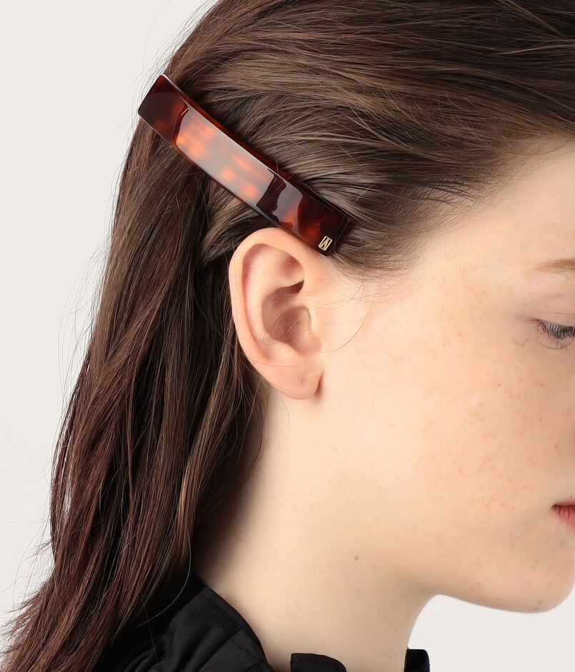 漆黒や、天然の石や植物をイメージさせるマーブルパターンを存分に楽しめるシンプルなスクエアバーバレッタ。