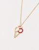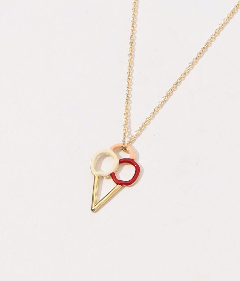 アイスクリームコーンにストロベリー、ココナッツ、ラズベリーの3種類のジェラートがトッピングされたネックレス。