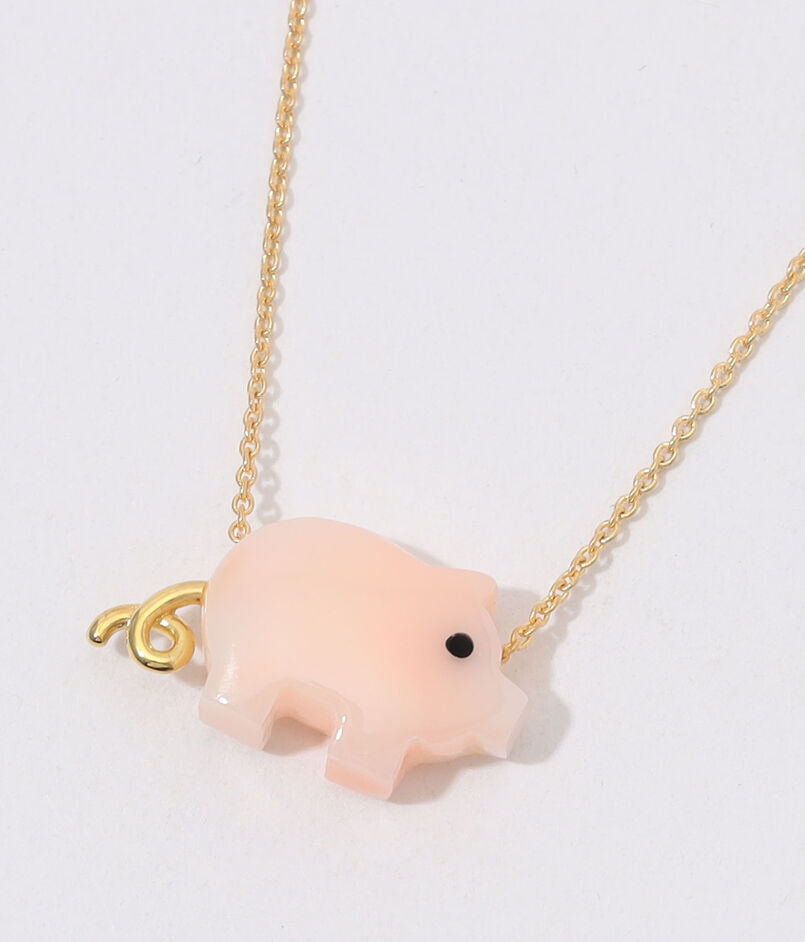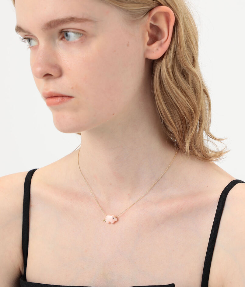 ピンクコーラルでつくられた子豚のモチーフが遊び心たっぷりのネックレス。
