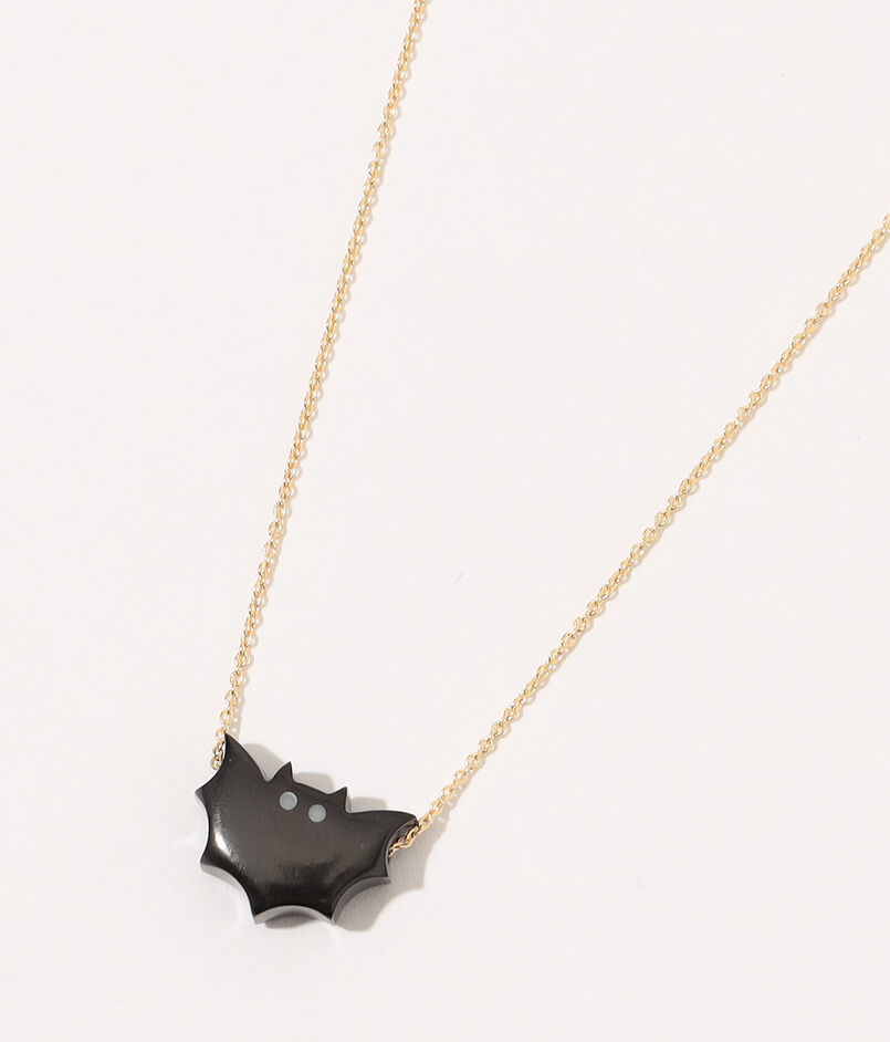 つぶらな瞳にツバサを広げた姿がユニークなコウモリのネックレス。