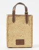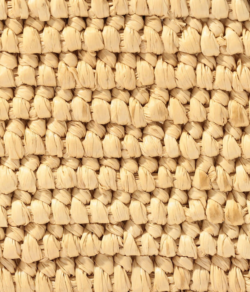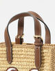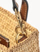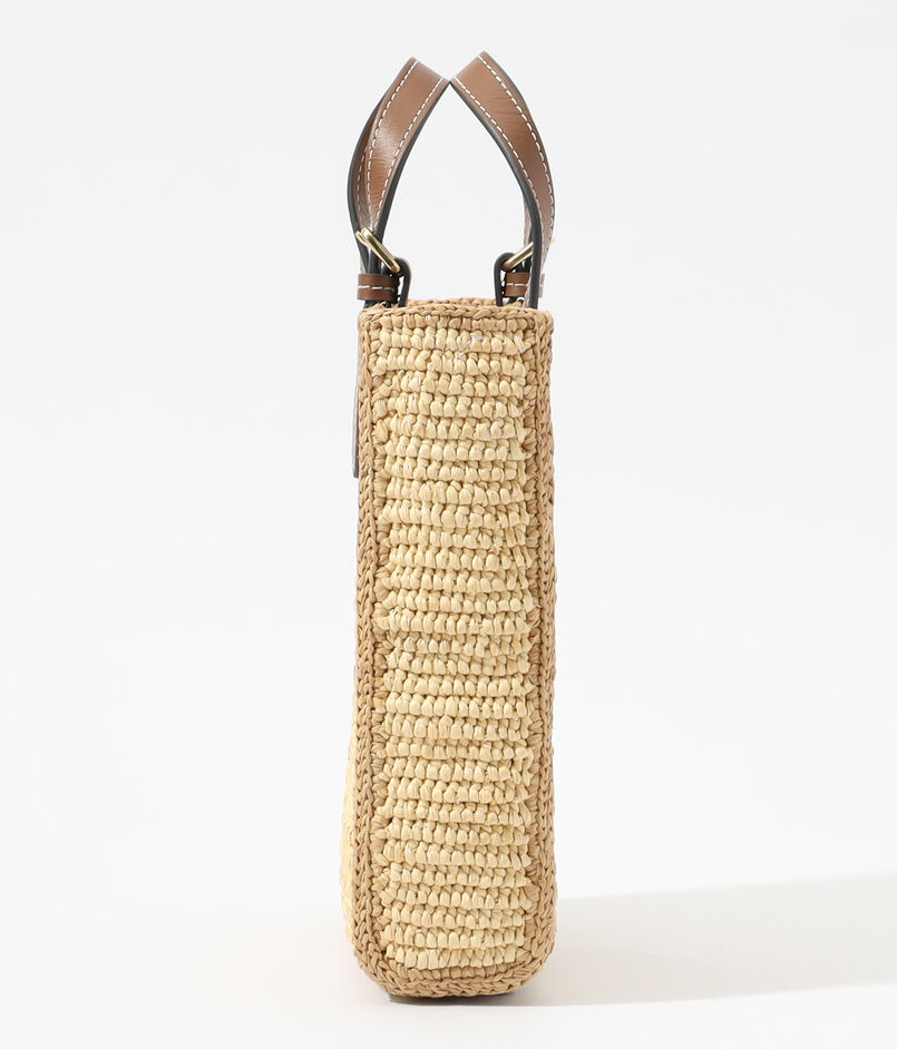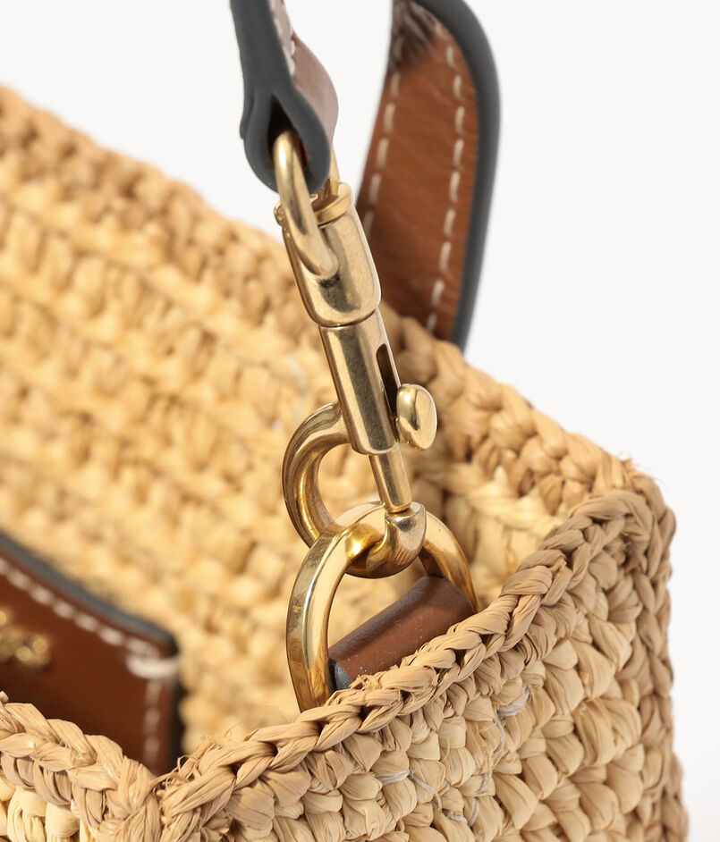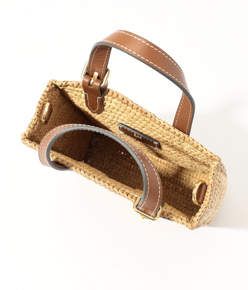 天然ラフィアとコニャックカラーのレザーを組み合わせた、シーズンムード漂うバッグ。