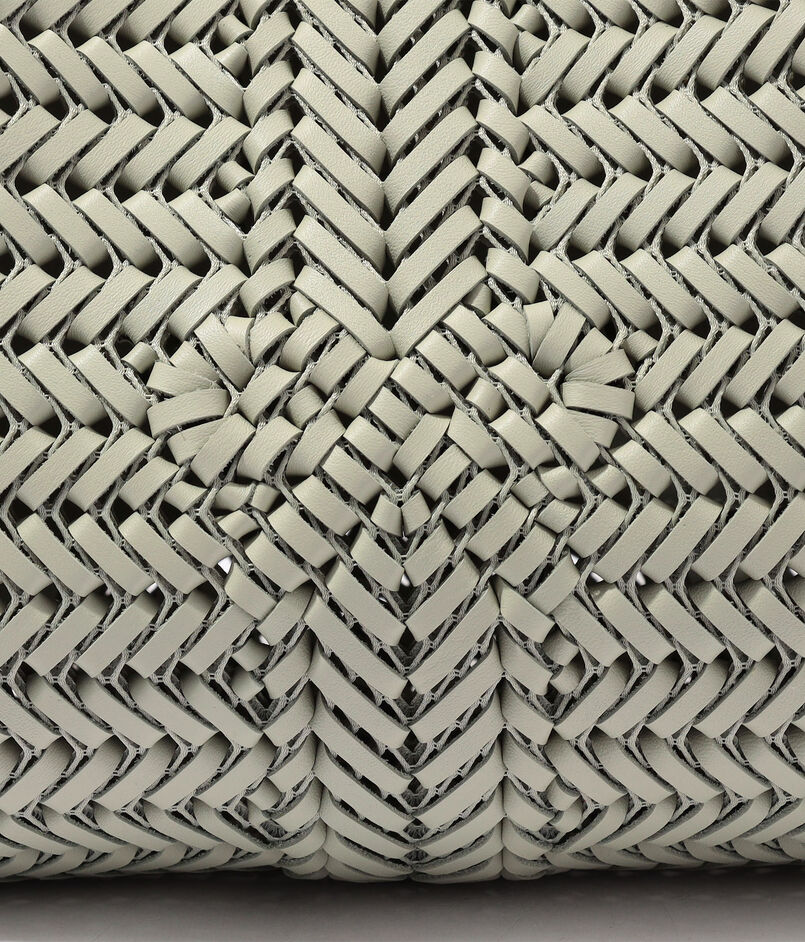レザーを丁寧に編み上げ、立体的に仕立てたクラフト感あふれる一品です。