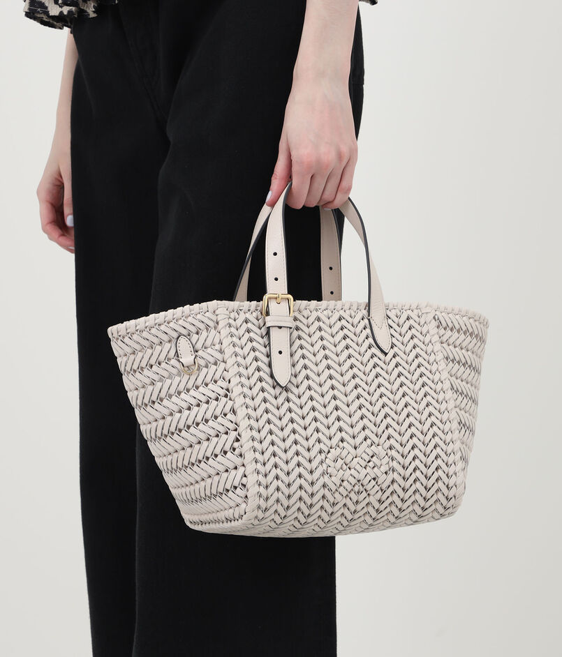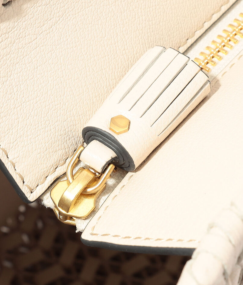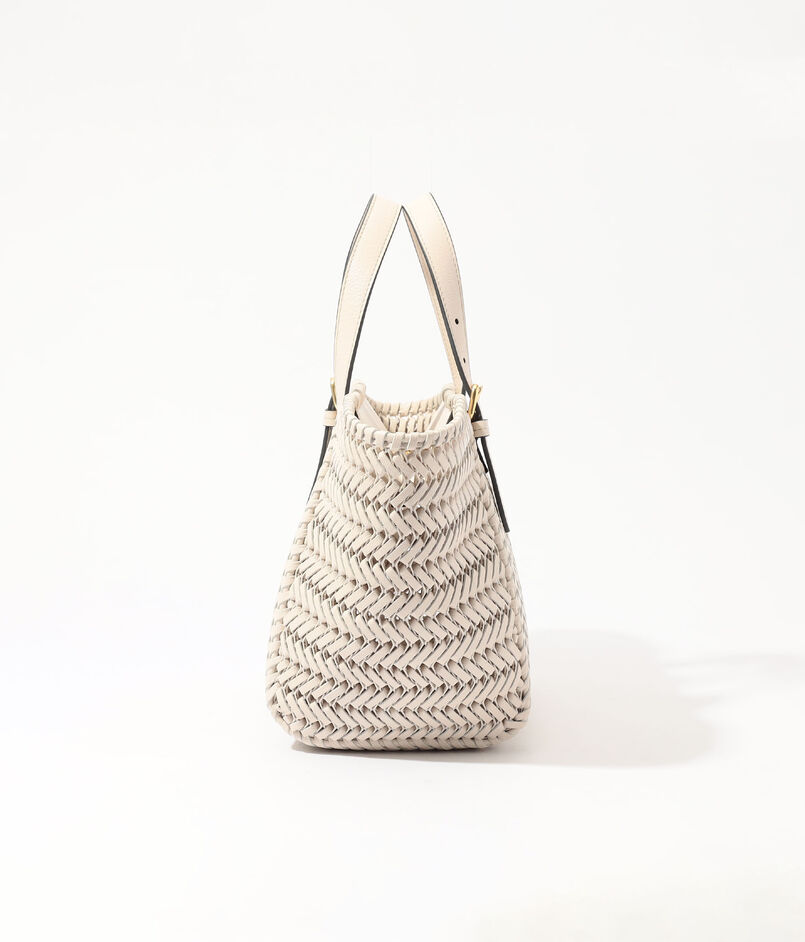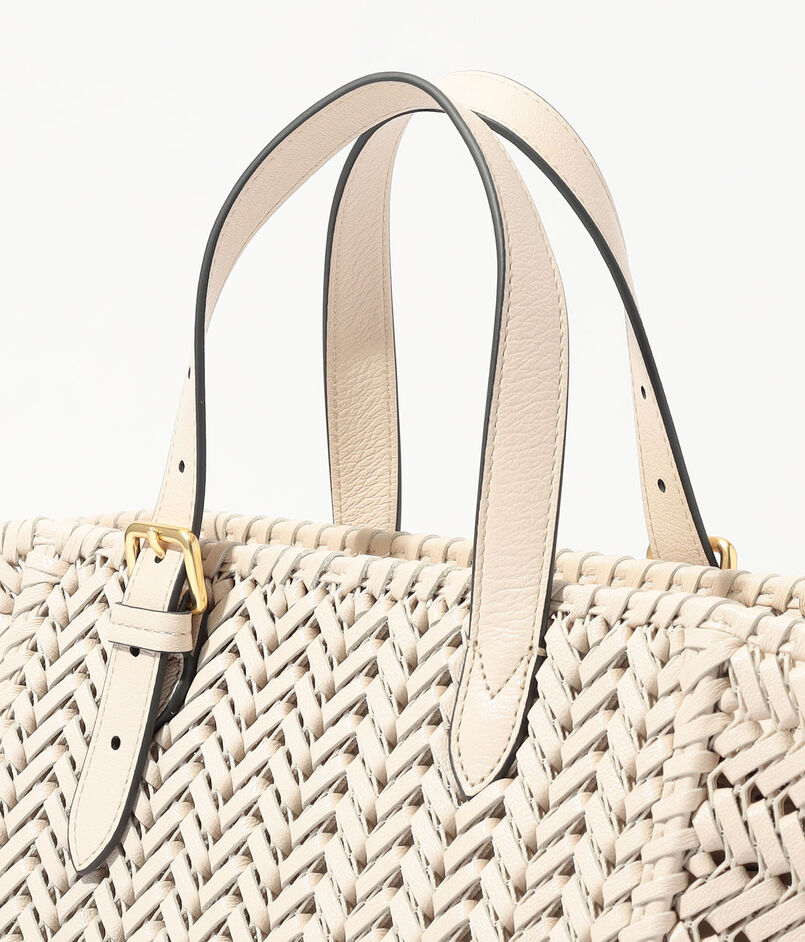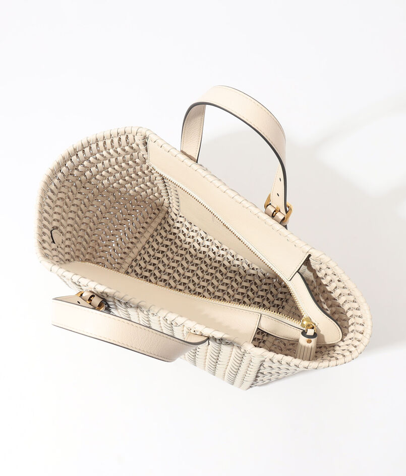 レザー・ストリングスを丁寧に編み込んだ、クラフトマンシップが際立つトートバッグ。