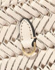 ※皮革には個体差があり、時間の経過と共に表面に変化が発生することがありますが、これは自然な現象です。またお使いいただくうちに、シワやたわみなどが生じることがあります。天然素材ゆえの経年変化であり、素材上の特性であることをあらかじめご理解ください。より良い状態で長くお使いいただくために、水分や直射日光を避け、お使いにならないときは通気性が良く、光の当たらない場所で保管することをおすすめします。熱や摩擦は色褪せ・変形・劣化の原因となることがありますのでご注意ください。