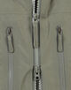 双方向のフロントジッパーが動きやすさを提供し、ハーネスにも対応しています。