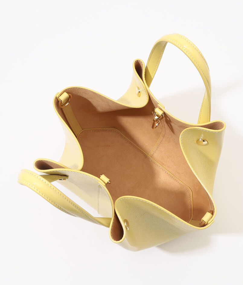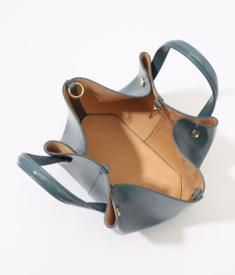 貝殻のように美しく、やさしく包み込むフォルムが印象的な〈SHELL〉のエナメルカーフレザーバージョン。