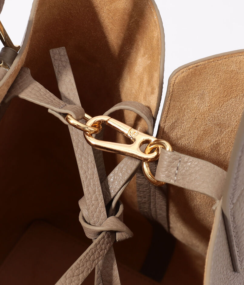 ミニマルに仕上げたワンハンドルデザインは、手持ちでも腕掛けでもバランスよく、装いに洗練されたアクセントをプラス。