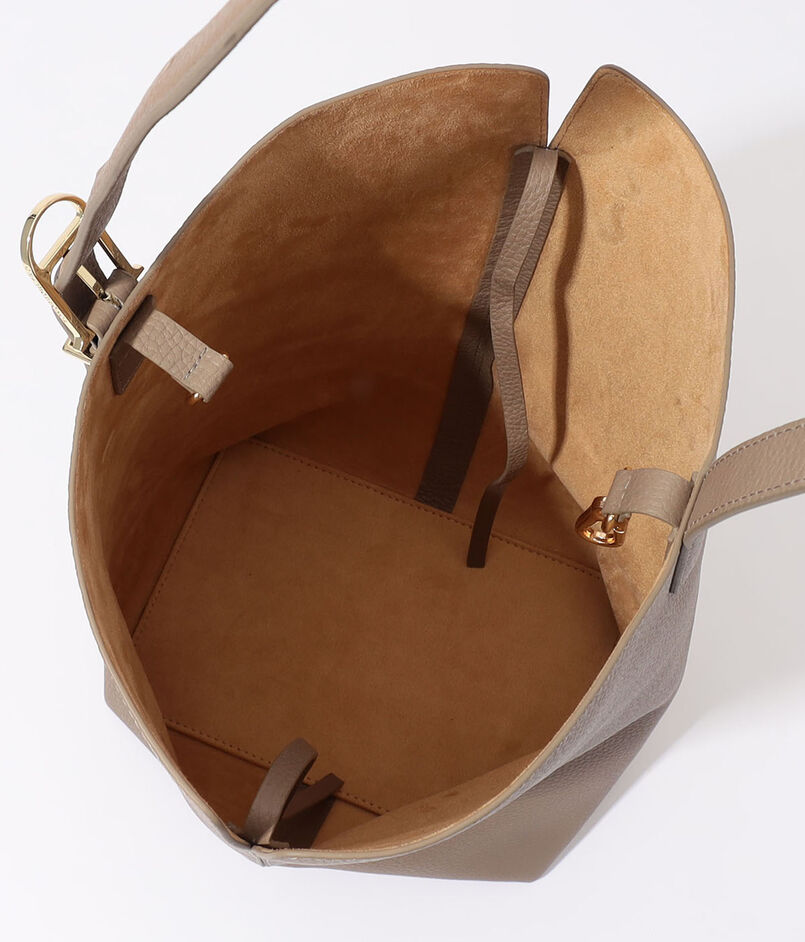 すっきりとしたフォルムが印象的なTETRAバッグは、上質なシボ革ならではの奥行きある表情が魅力。