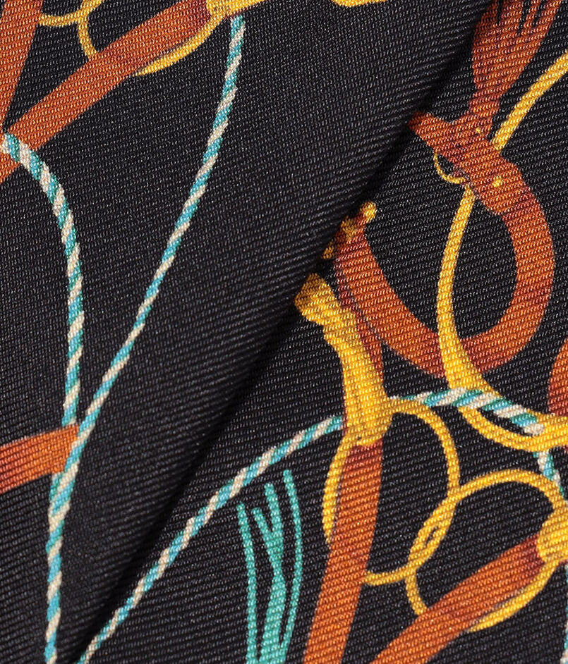 クラシックなタッセルモチーフを配した柄が、装いにさりげない気品を添えます。