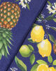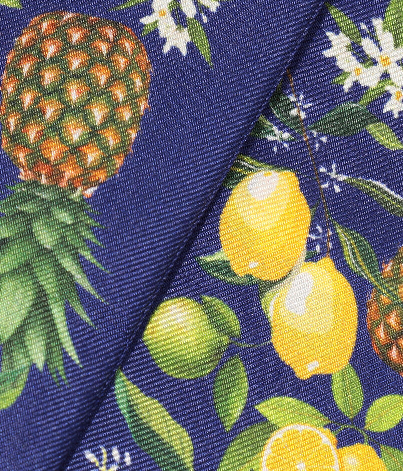 爽やかなフルーツとフラワーのアートワークをあしらったスカーフ。