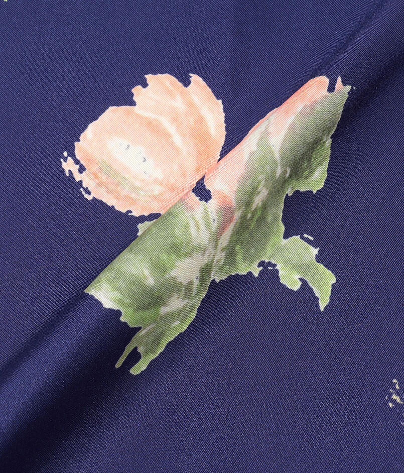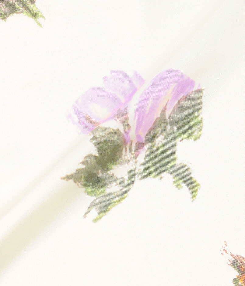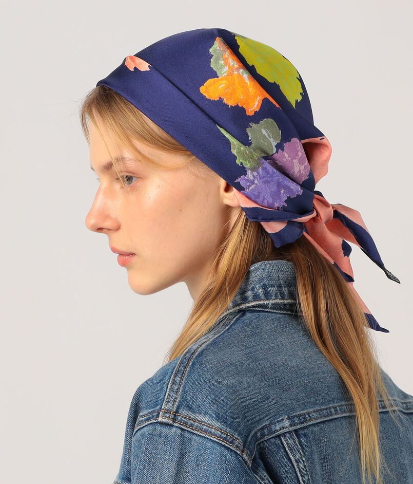 ペイントフラワー柄をあしらった、ソフトで軽快な表情が印象的なスカーフ。