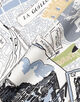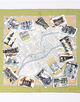 手描きのシティマップを思わせる、遊び心あふれるデザインのスカーフ。