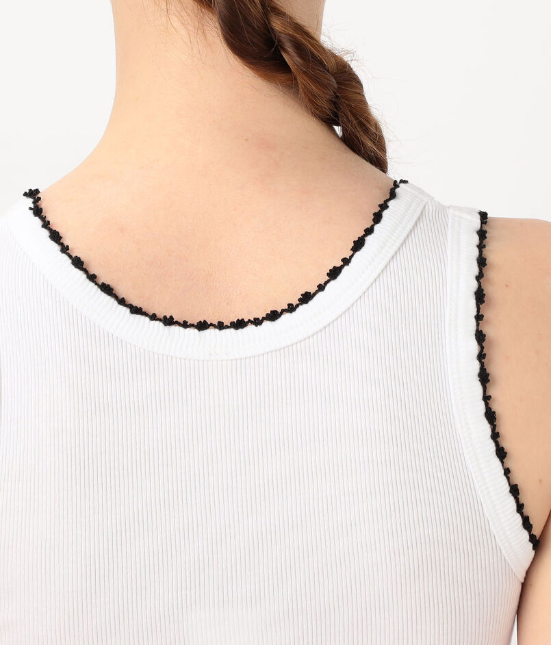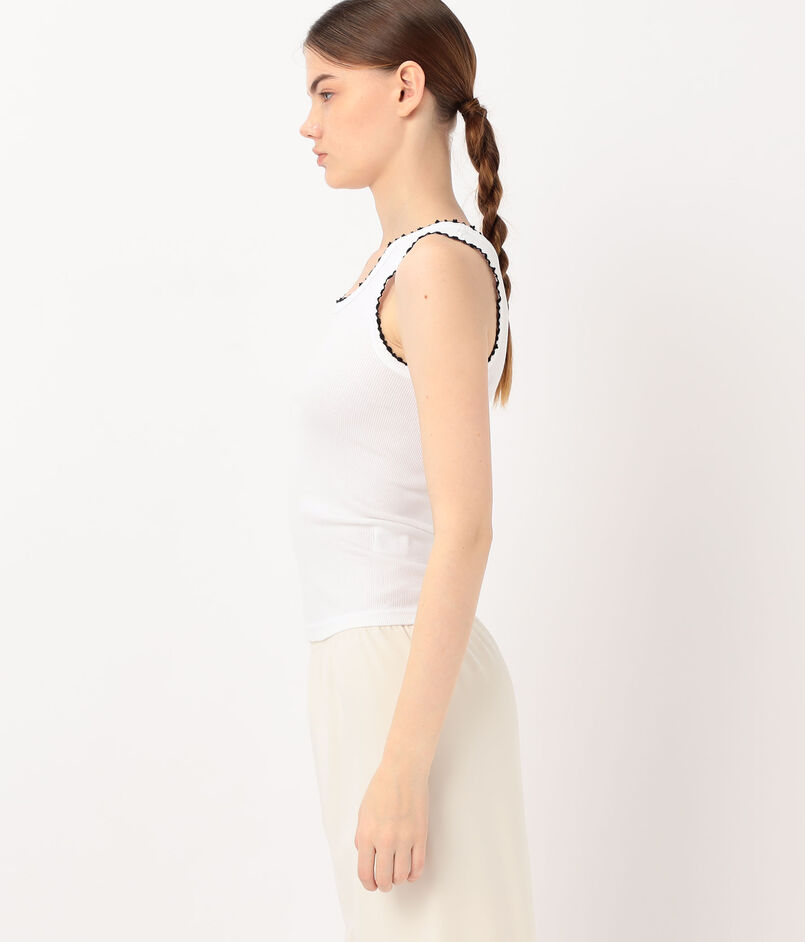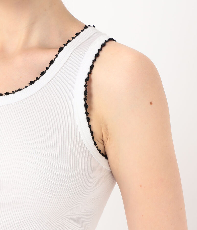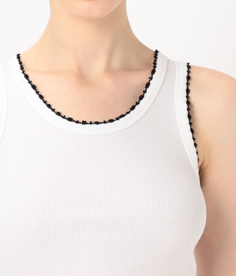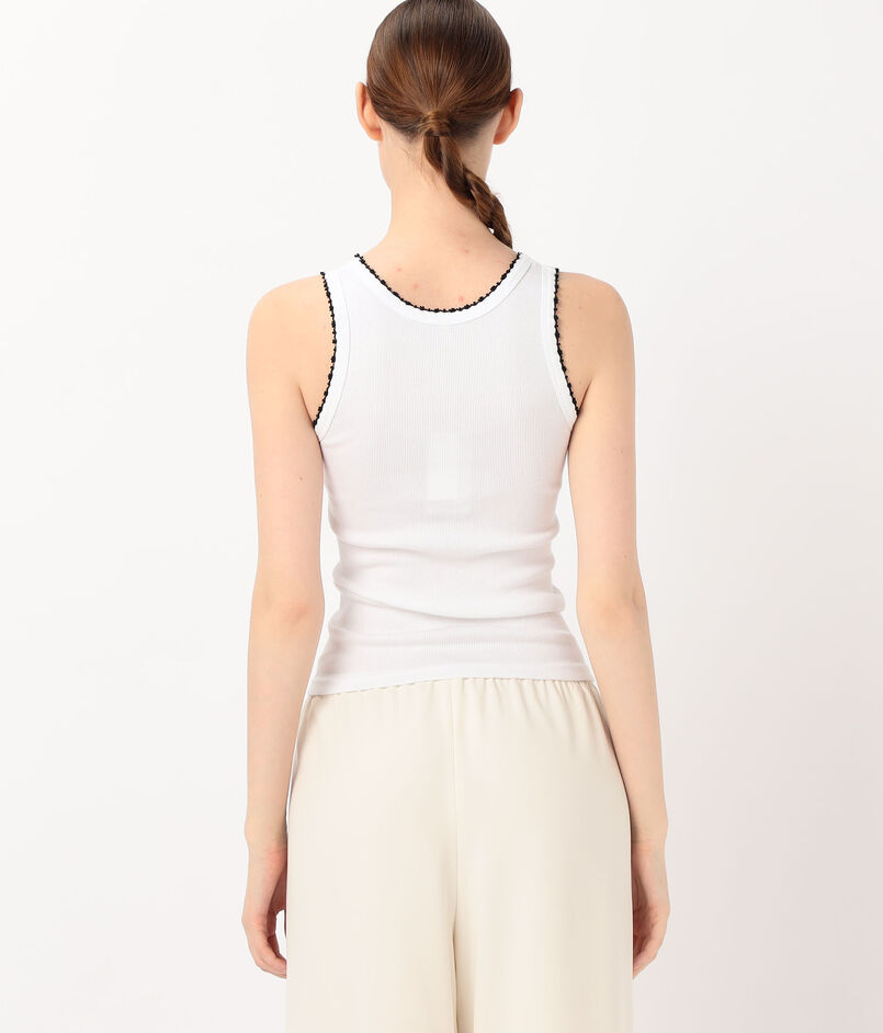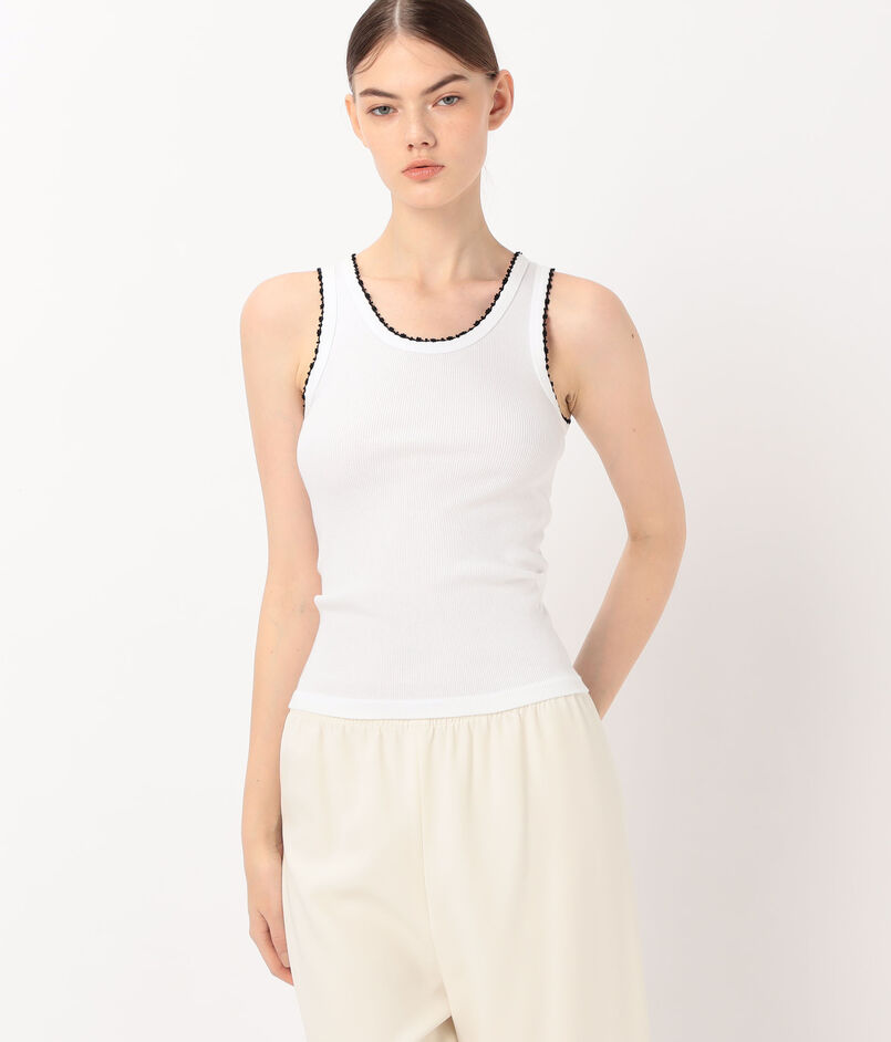 細いリブのシンプルなタンクトップ。