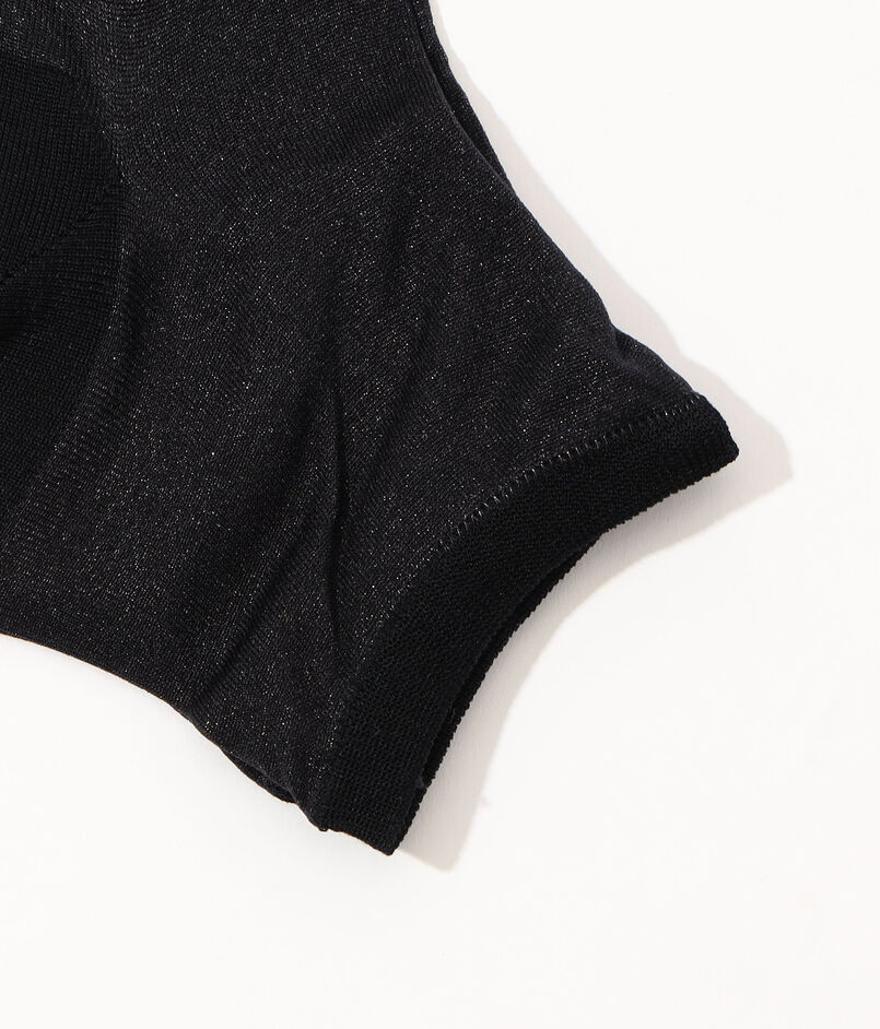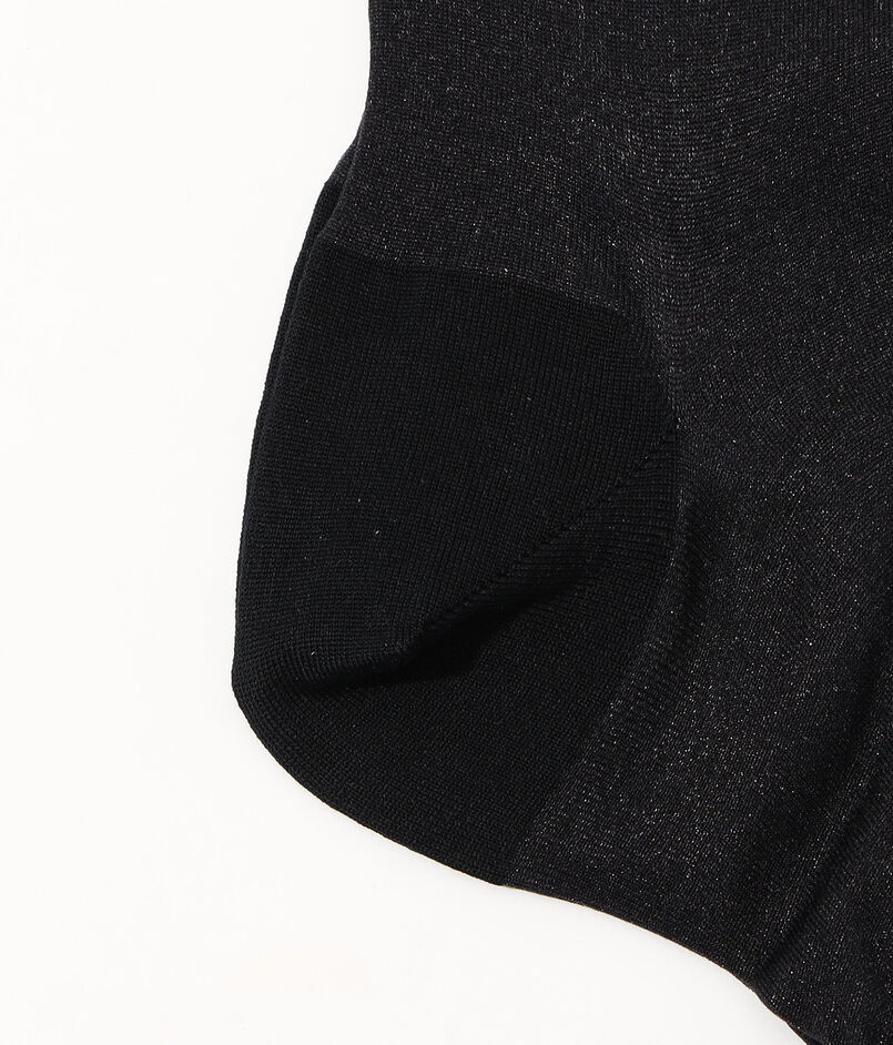 細かなラメを織り込んだ、さらりとしたシアーな素材感がセンシュアルなムードを演出するソックス。