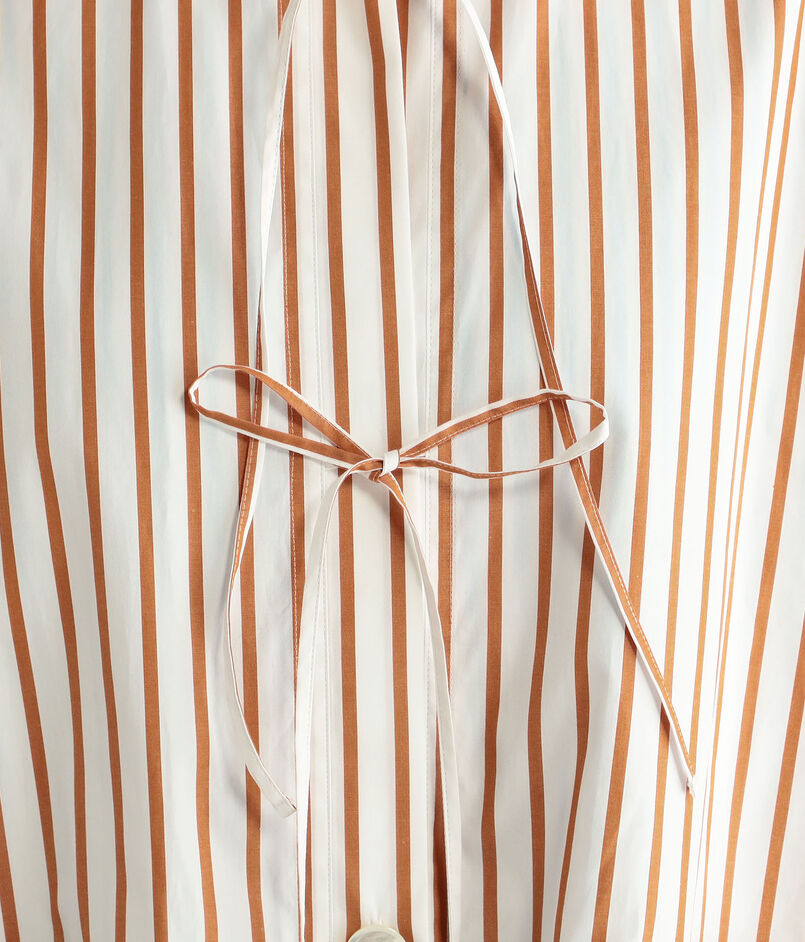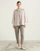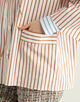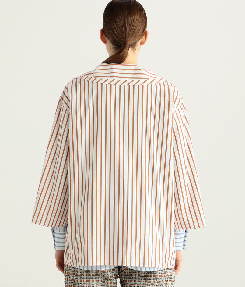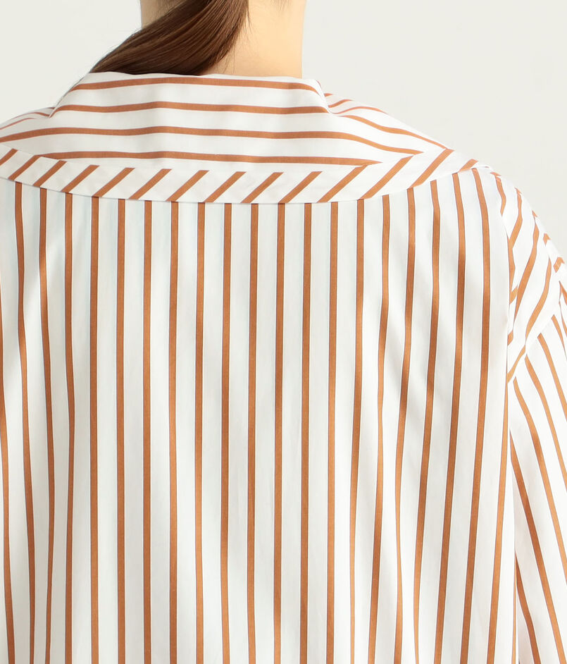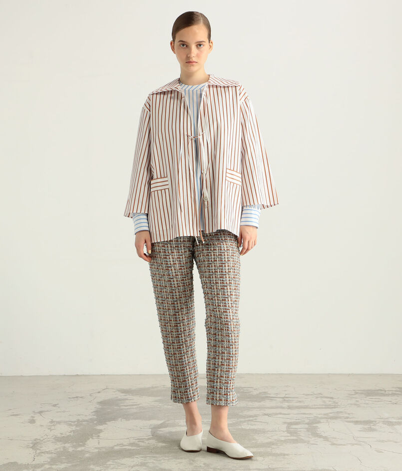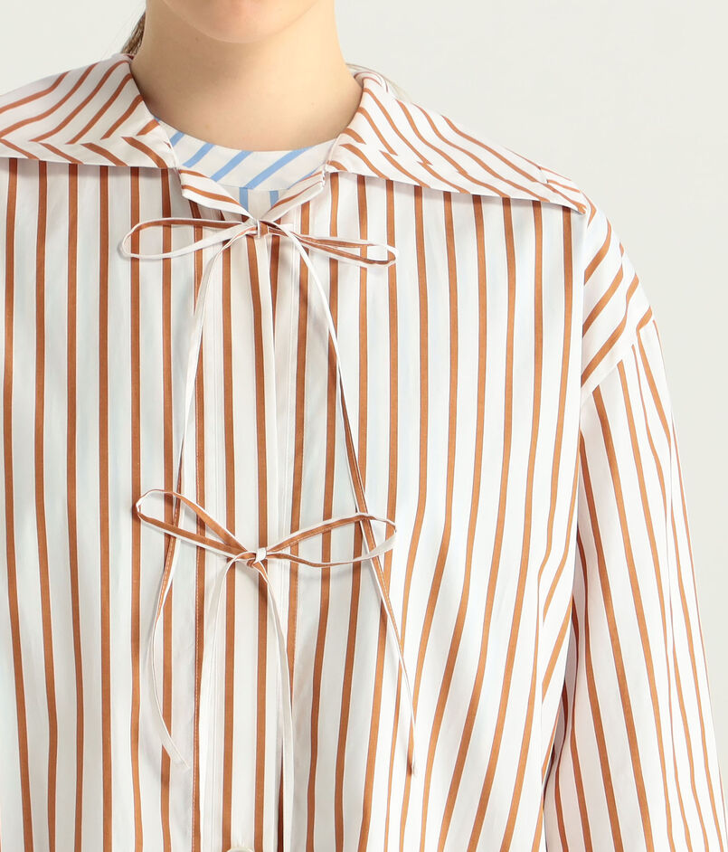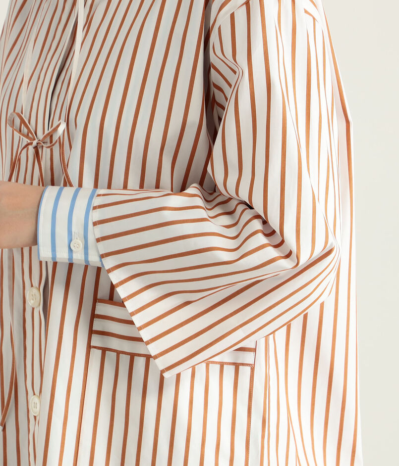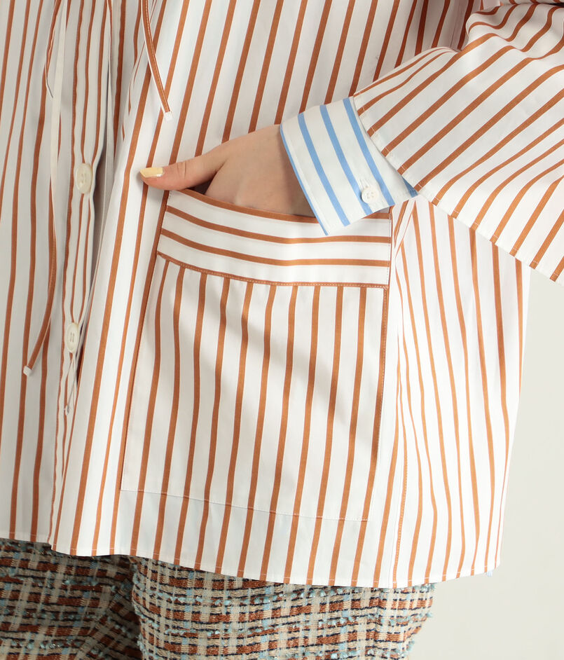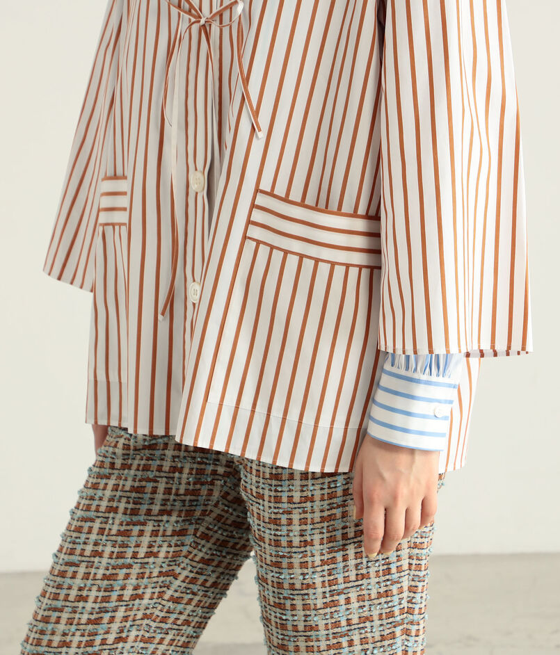大きめの襟とポケットがポイントのシャツは、ガウンのようなイメージで仕上げました。