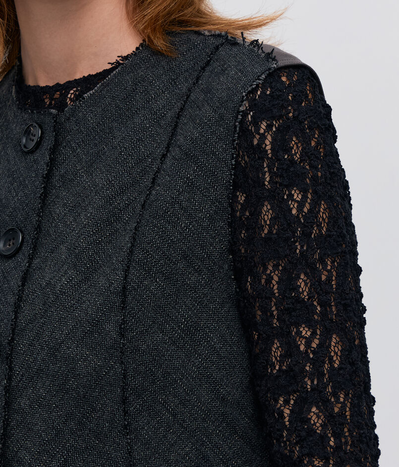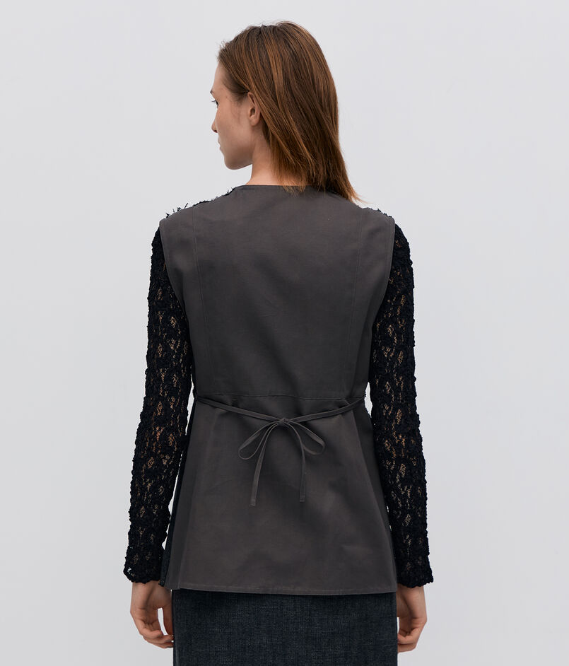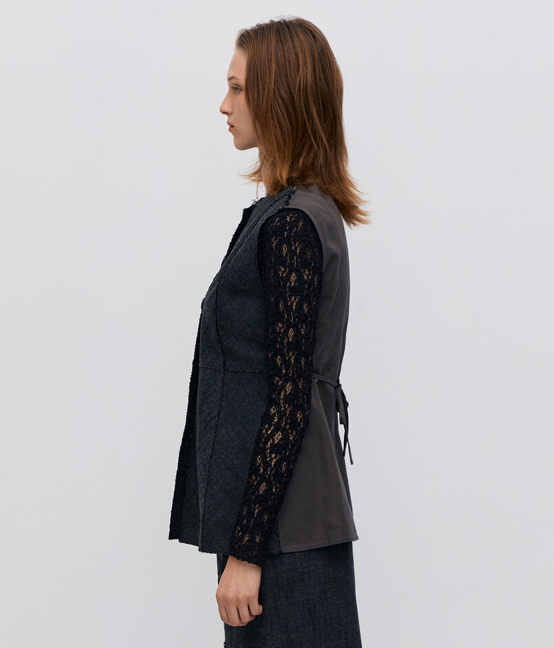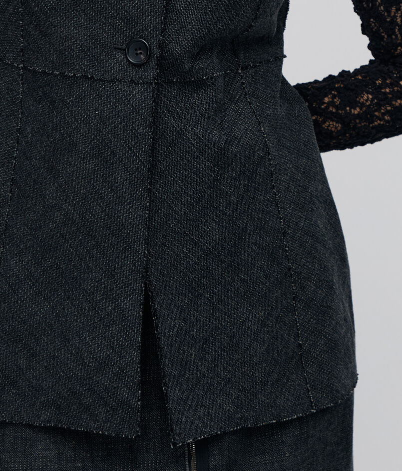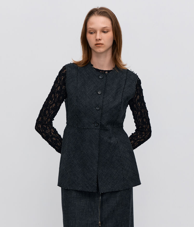 マニッシュな印象のイタリアの生地を使用したジレ。