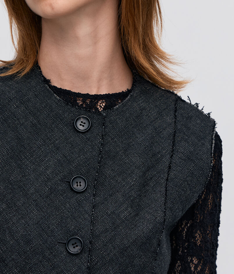 カットオフ仕様でワイルドさがありつつも、フェミニンなシルエットに落とし込むことでミックス感のあるスタイルが叶う一着。