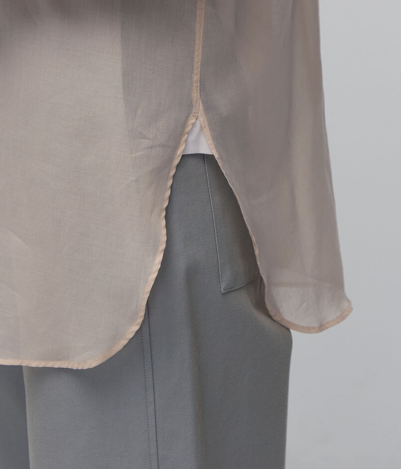 オーガンジー特有の軽さとハリと、コットンの持つナチュラルな風合いを併せ持った素材を使用したブラウスシリーズ。