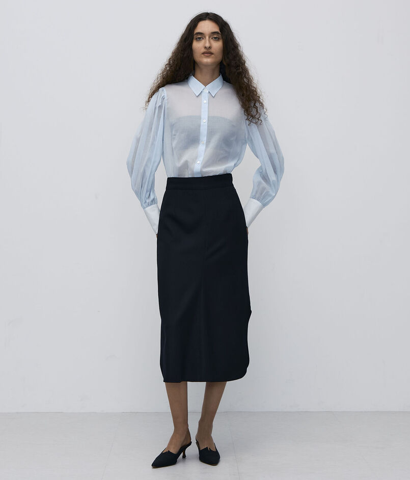 パフスリーブブラウスは大胆なボリュームを持たせた袖とすっきりとした身頃とのコントラストが美しい一着。