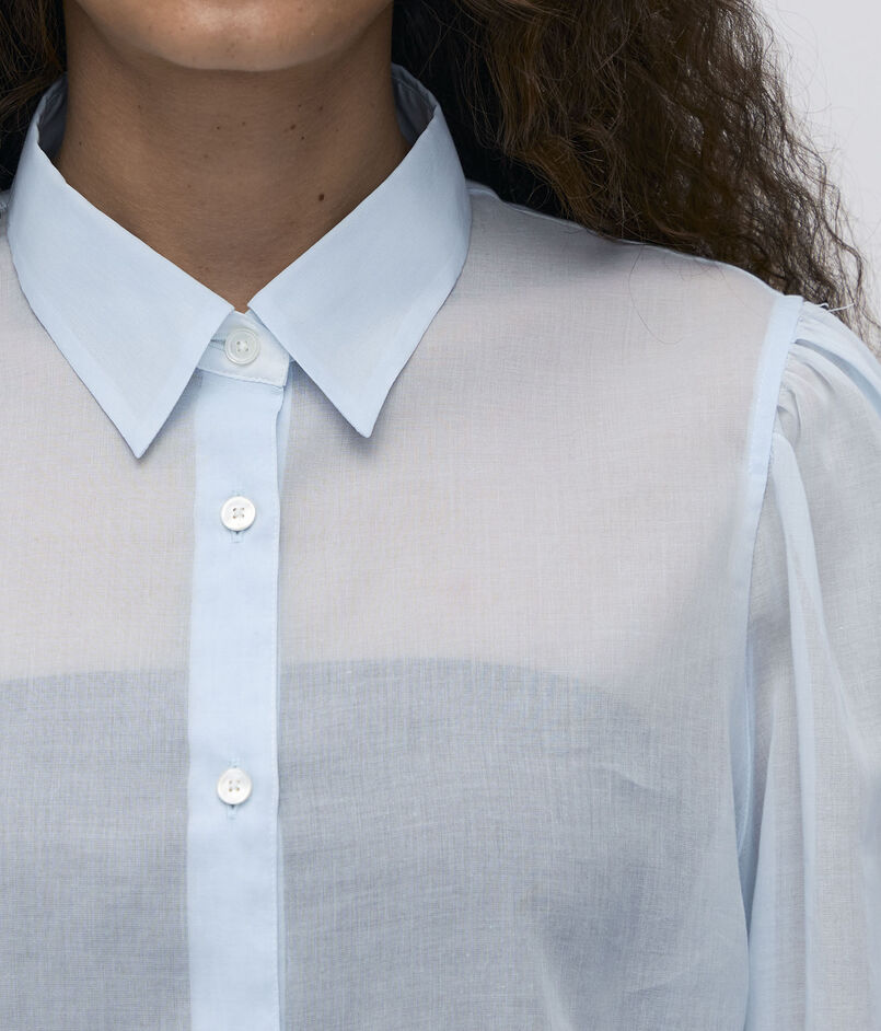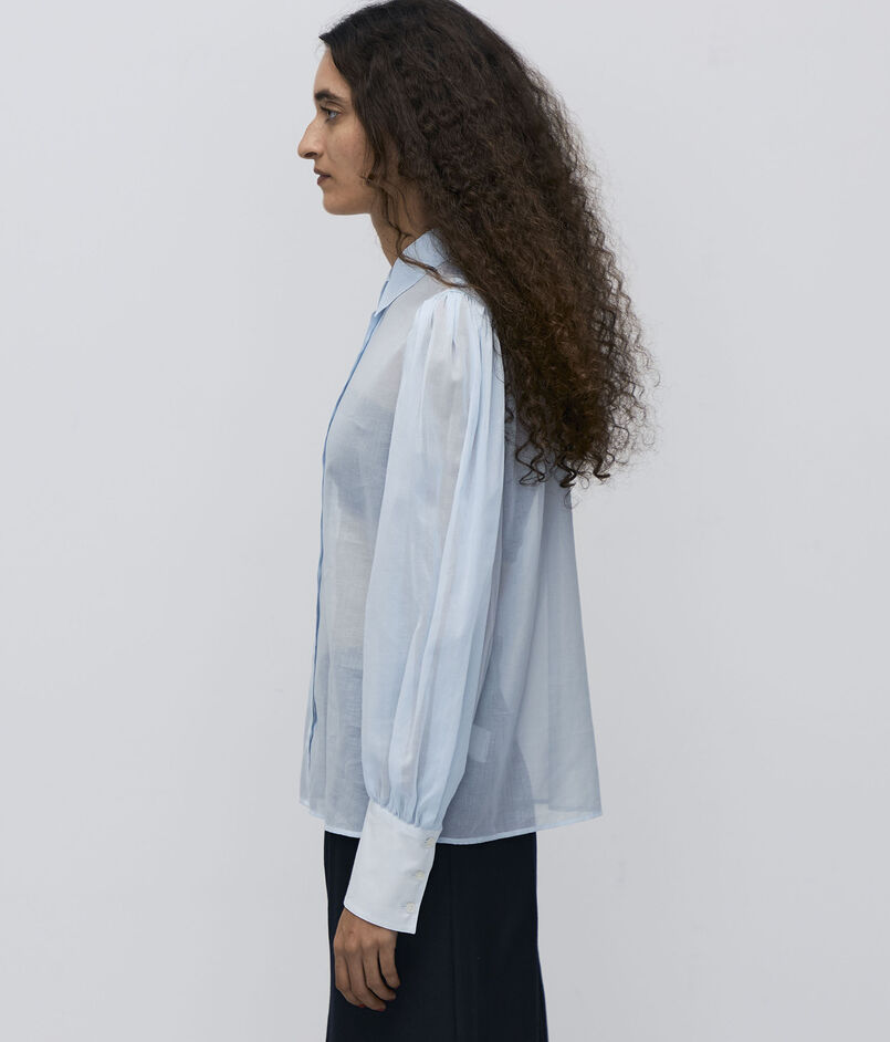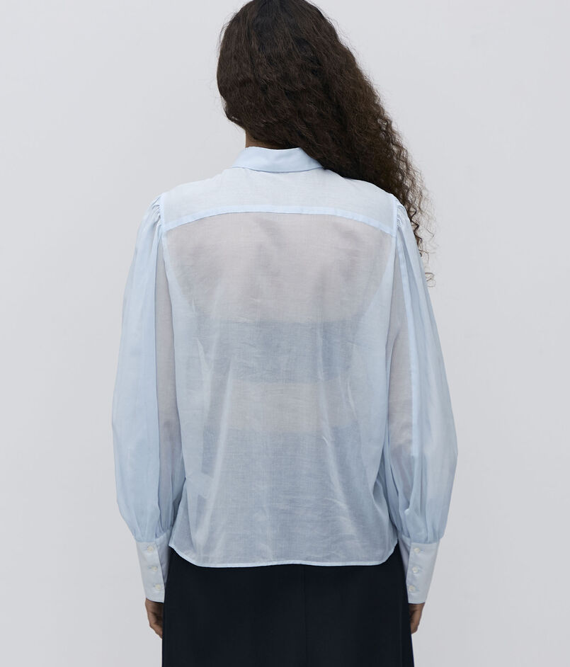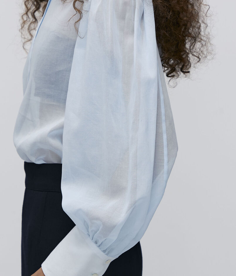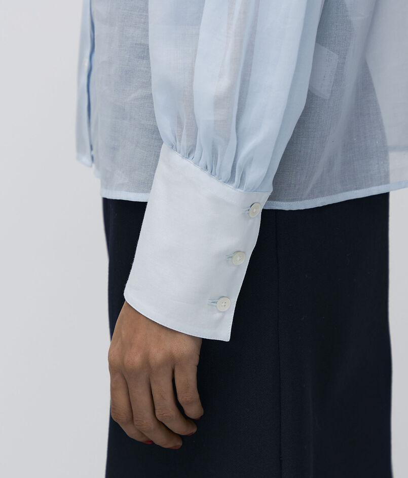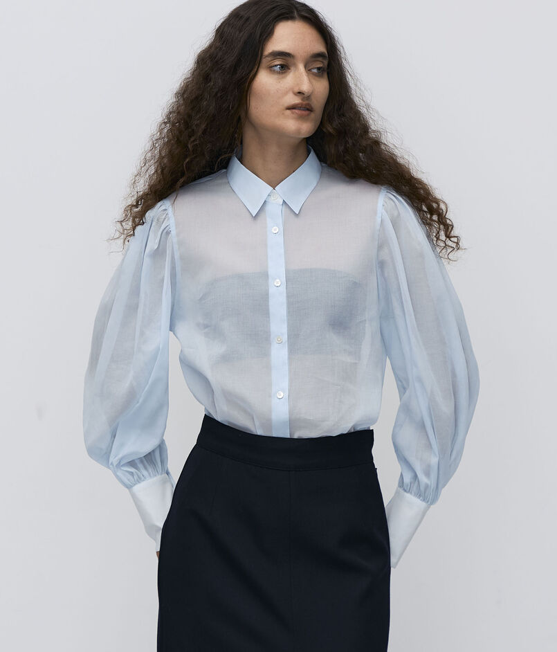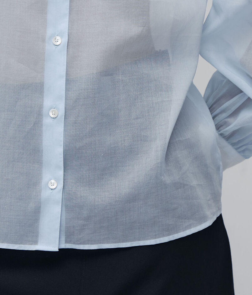 オーガンジー特有の軽さとハリと、コットンの持つナチュラルな風合いを併せ持った素材を使用したブラウスシリーズ。
