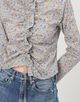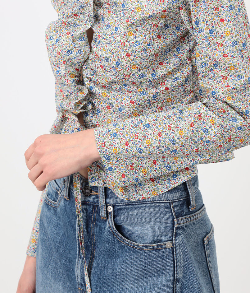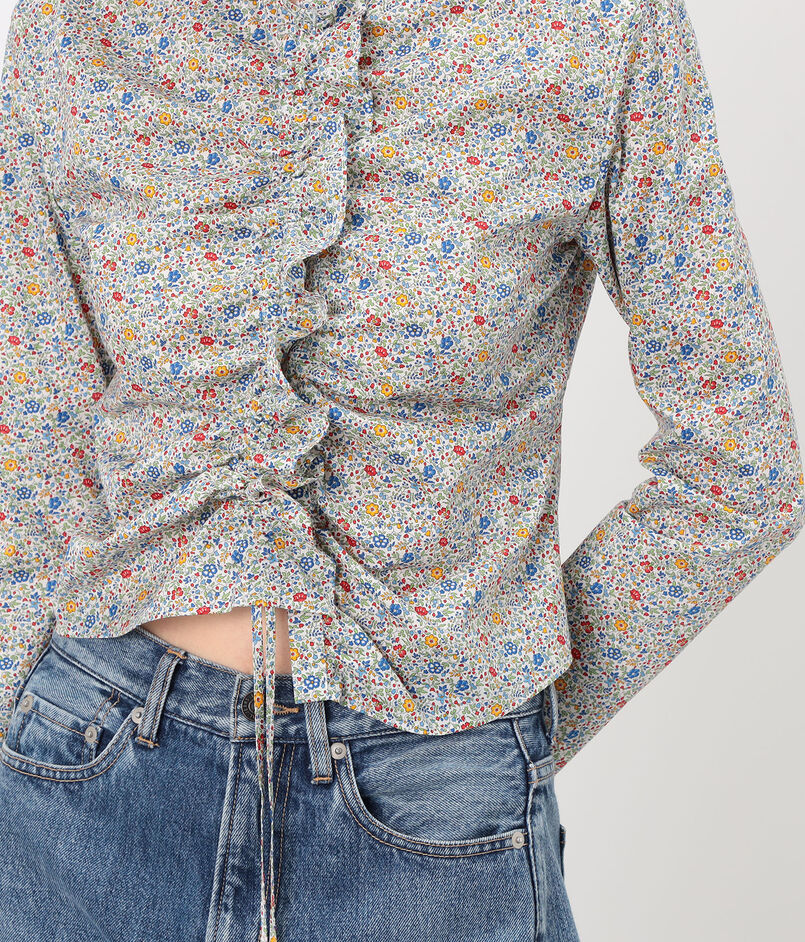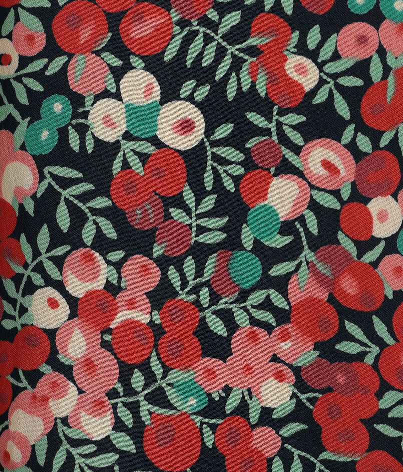 ブランドを代表するギャザードブラウスをベースに、ブランド名の由来である「赤い実」をあしらったLIBERTY社の特別なプリントファブリックを使用しています。