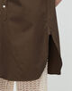 腰まわりまでゆったりとカバーするシルエットで、透け感のあるボトムとのレイヤードはもちろん、同素材のパンツ(商品番号:35-04-62-04402)やスカート(商品番号:35-05-62-05402)と合わせたセットアップやワンピース風の着こなしもおすすめ。