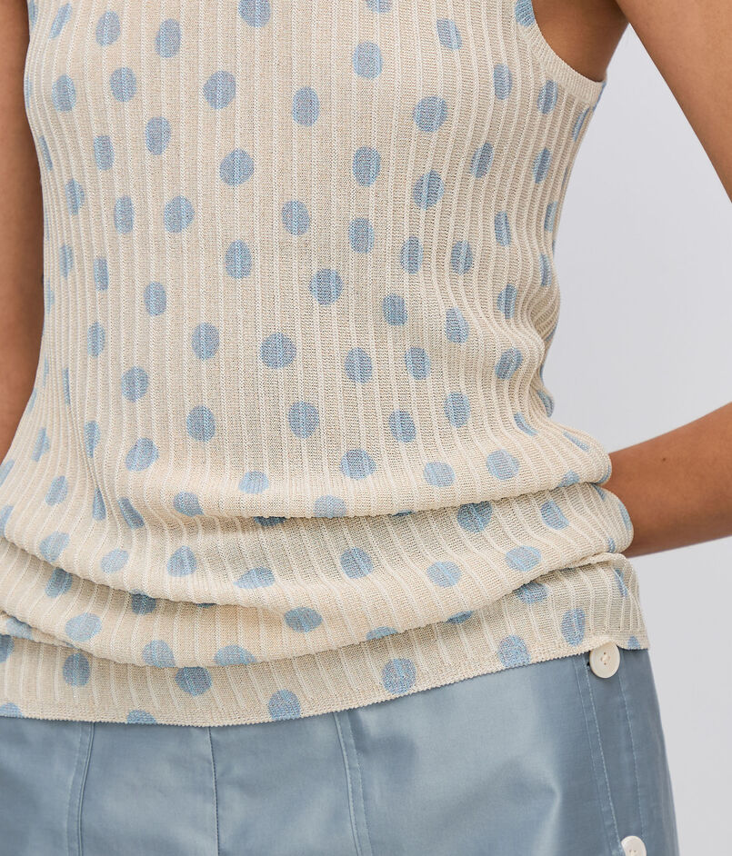 ラメ遣いや手描きのドットプリントがどこか懐かしいヴィンテージ風のラメニット。