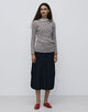 ボディに沿うすっきりとしたシルエットで、ワイドパンツやフレアスカートなどボリュームのあるボトムスとも相性抜群。