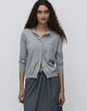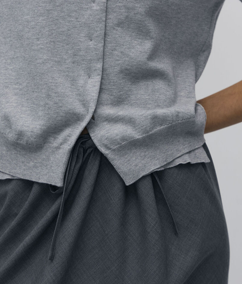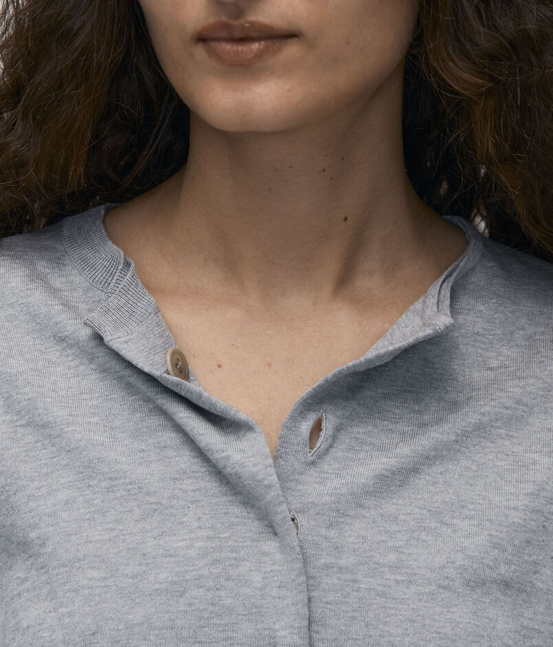 前身頃を二重仕立てにしたカーディガン。
