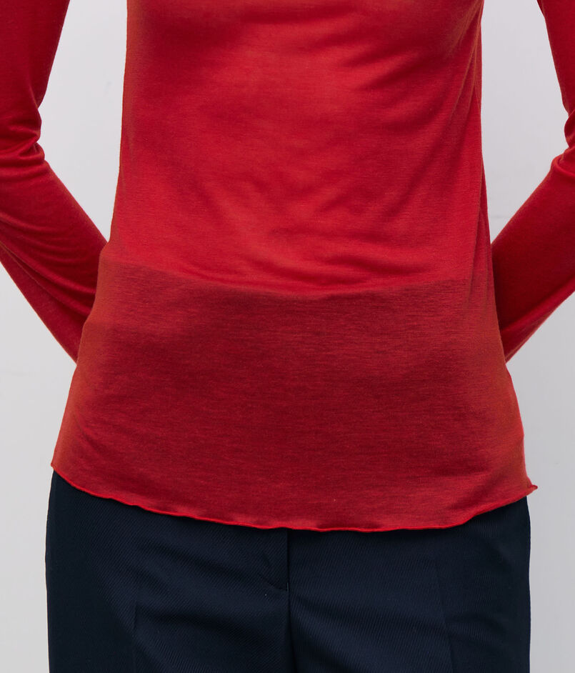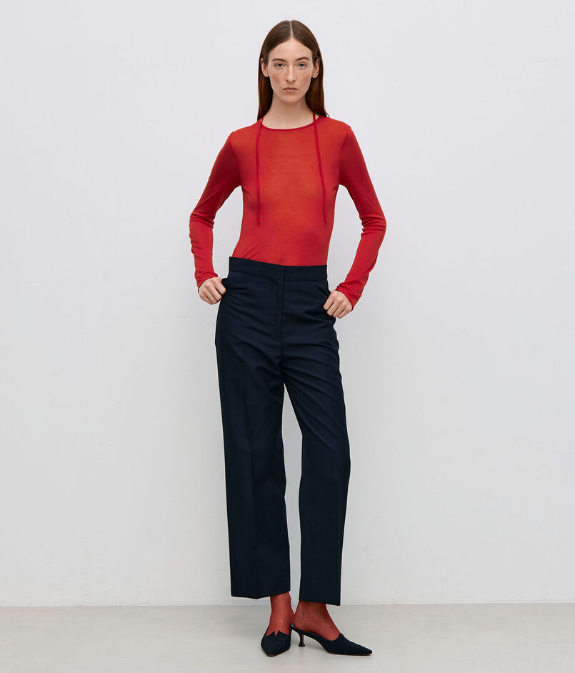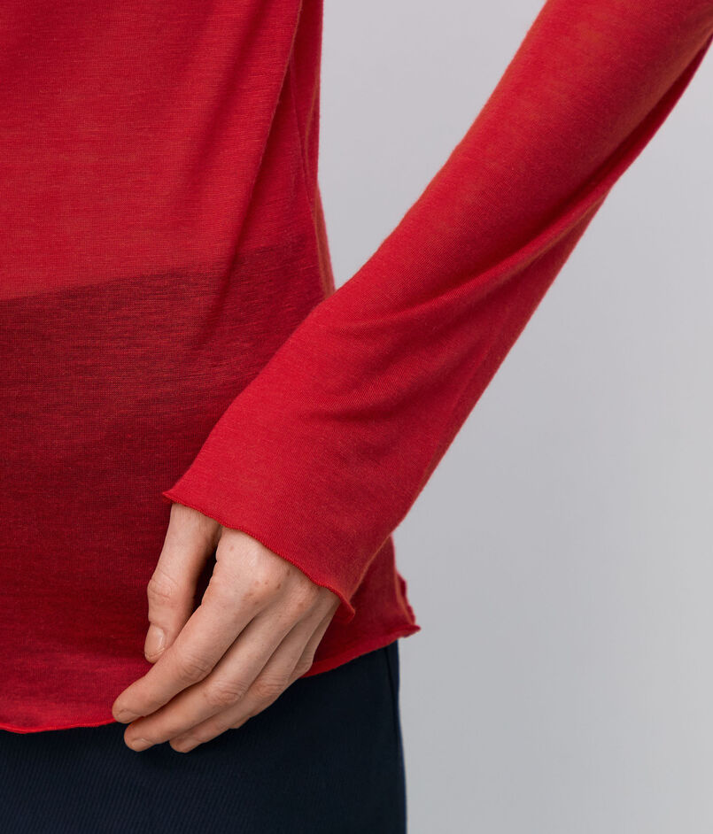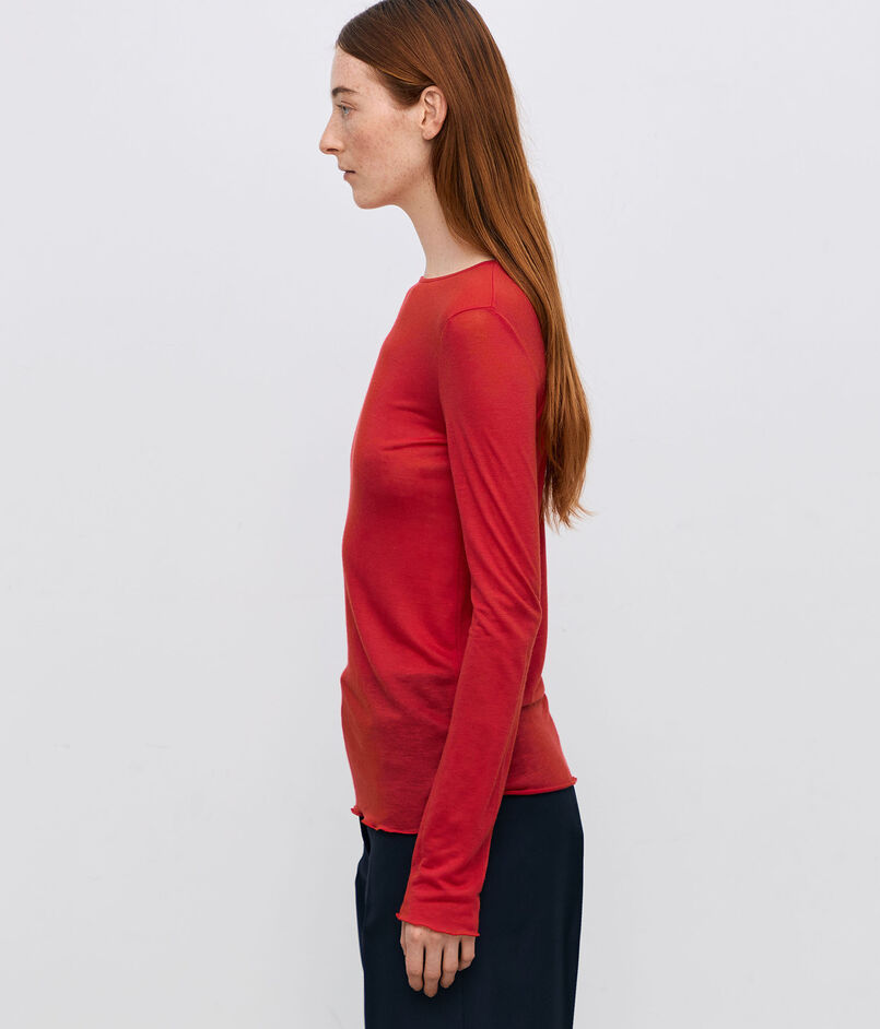 シンプルなロングスリーブカットソーは細身のシルエットでインナーとしても使いやすいサイズ感。